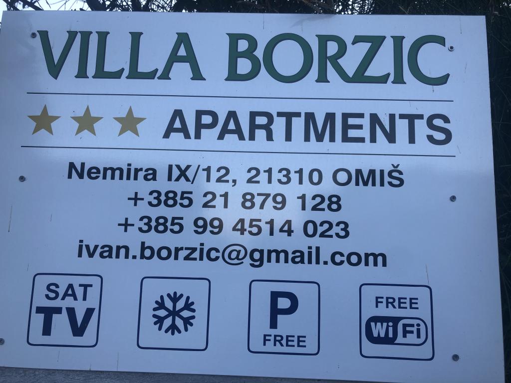 Vila Borzić ob prihodu v apartma ponuja steklenico vina in 2 pivi. Vila Borzić ponuja možnost izletov z ladjo Tornado na otoke, izlete z ladjo po reki Cetini ter kajakaštvo in rafting ter ZIP line. Samo Vila Borzić ima zasebni izhod na glavno avtobusno postajo za Split, Dubrovnik in Makarsko. Vsi gostje imajo možnost uporabe zunanjega žara s teraso ter brezplačnega parkiranja in brezplačnega brezžičnega interneta. V bližini objekta je več restavracij in 2 supermarketa. 2 bankomata se nahajata le 100 m od Ville Borzić. Vila Borzić je idealna za družine z otroki. Pripeljati pse, mačke ... ni dovoljeno.
