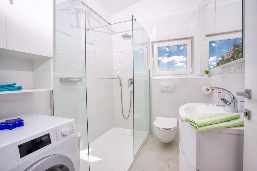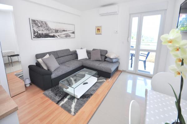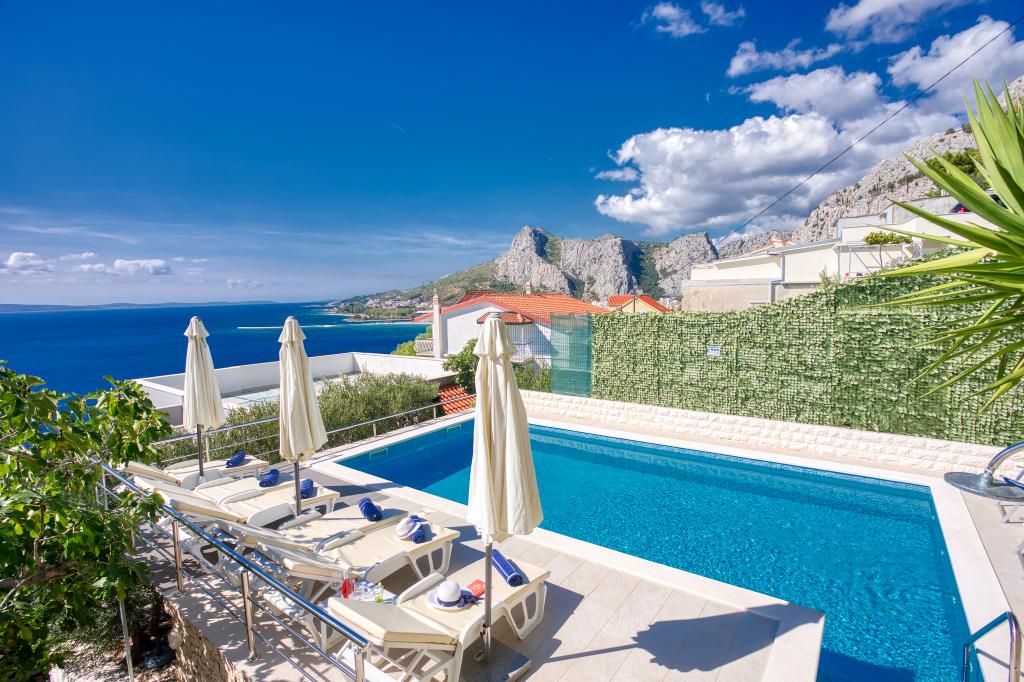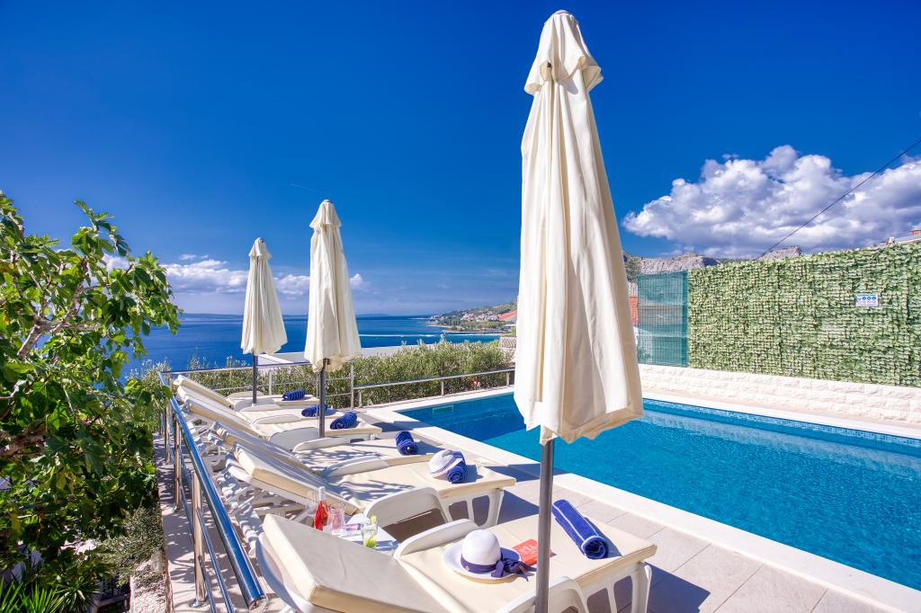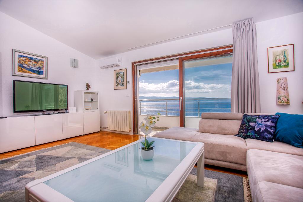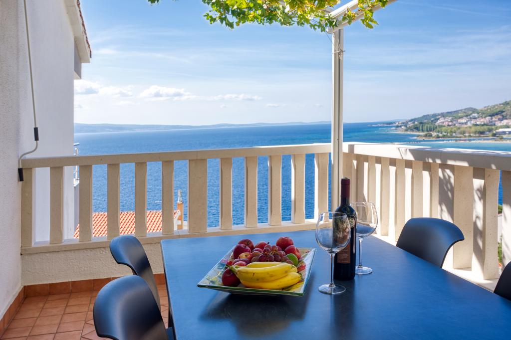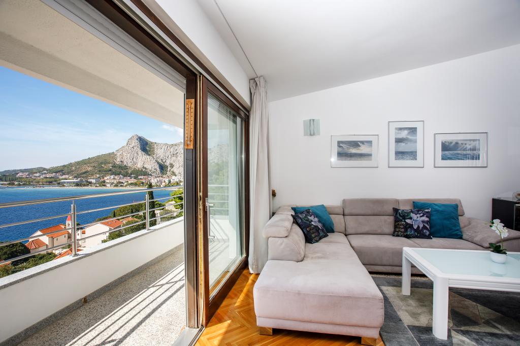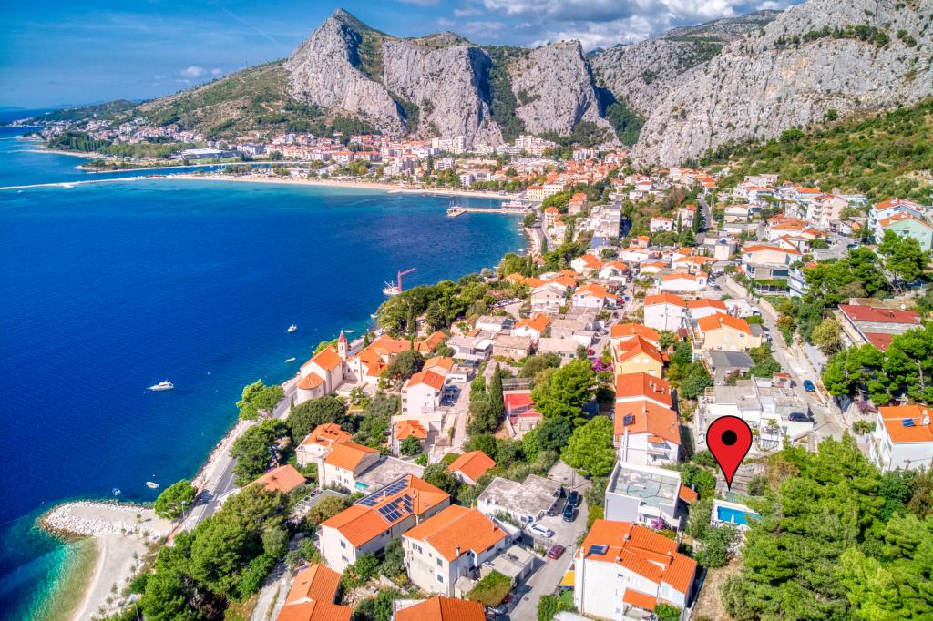 moderni apartmaji v mirnem območju Omiša, obkrožen z mediteranskim rastlinjem, s pogledom na morje.