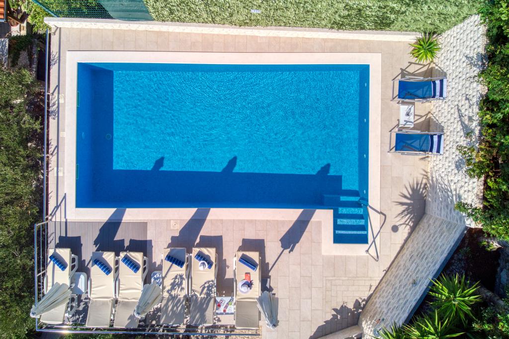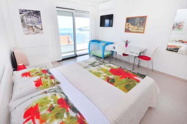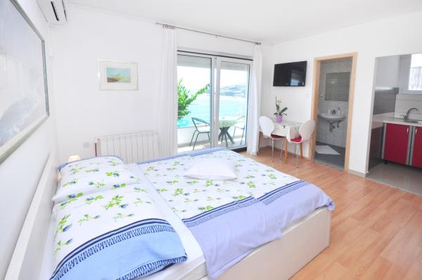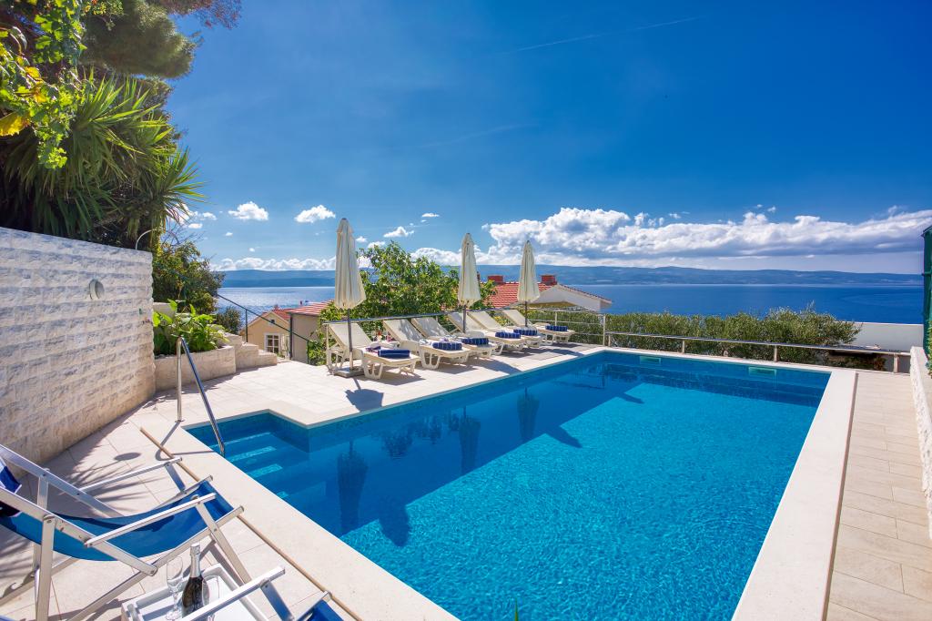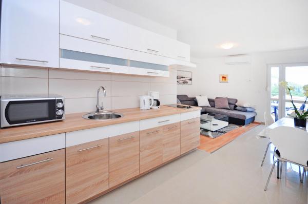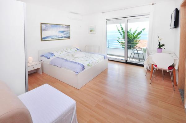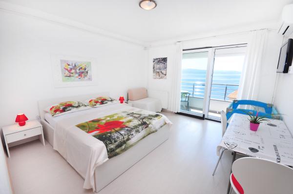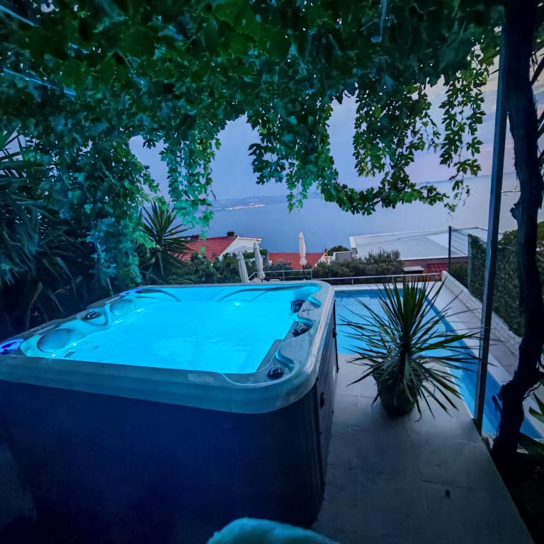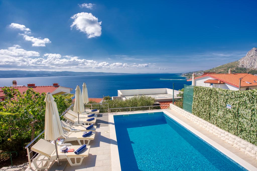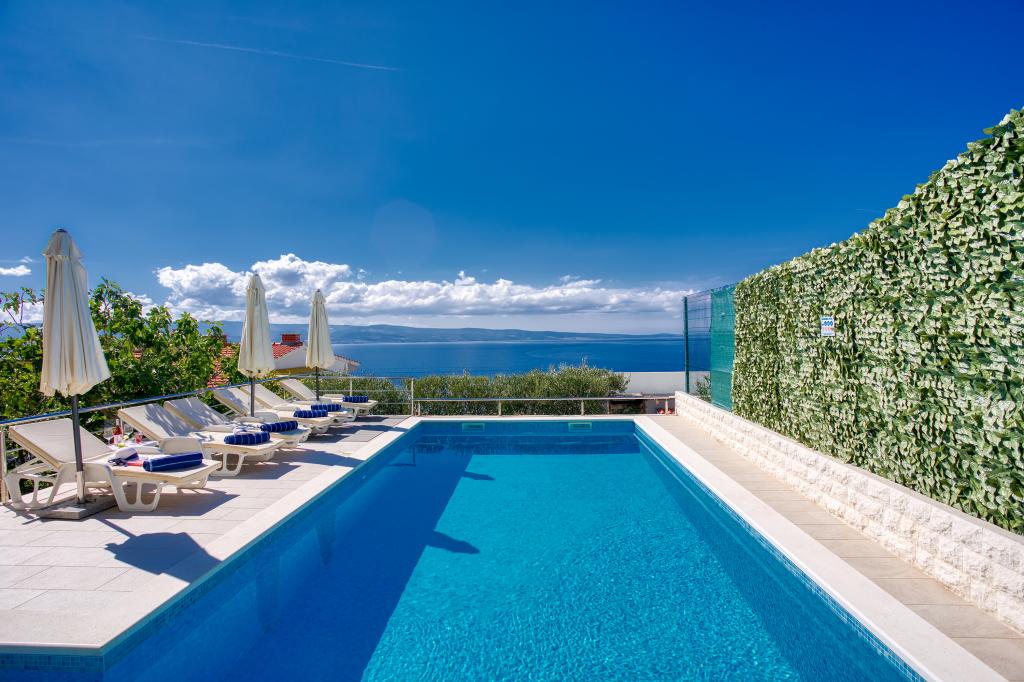moderni apartmaji v mirnem območju Omiša, obkrožen z mediteranskim rastlinjem, s pogledom na morje.