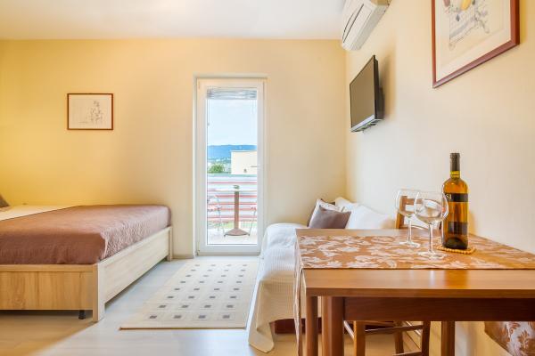 Apartmaji so popolnoma opremljeni in se nahaja v mirnem delu Omišalj, 5 minut hoje od plaže.