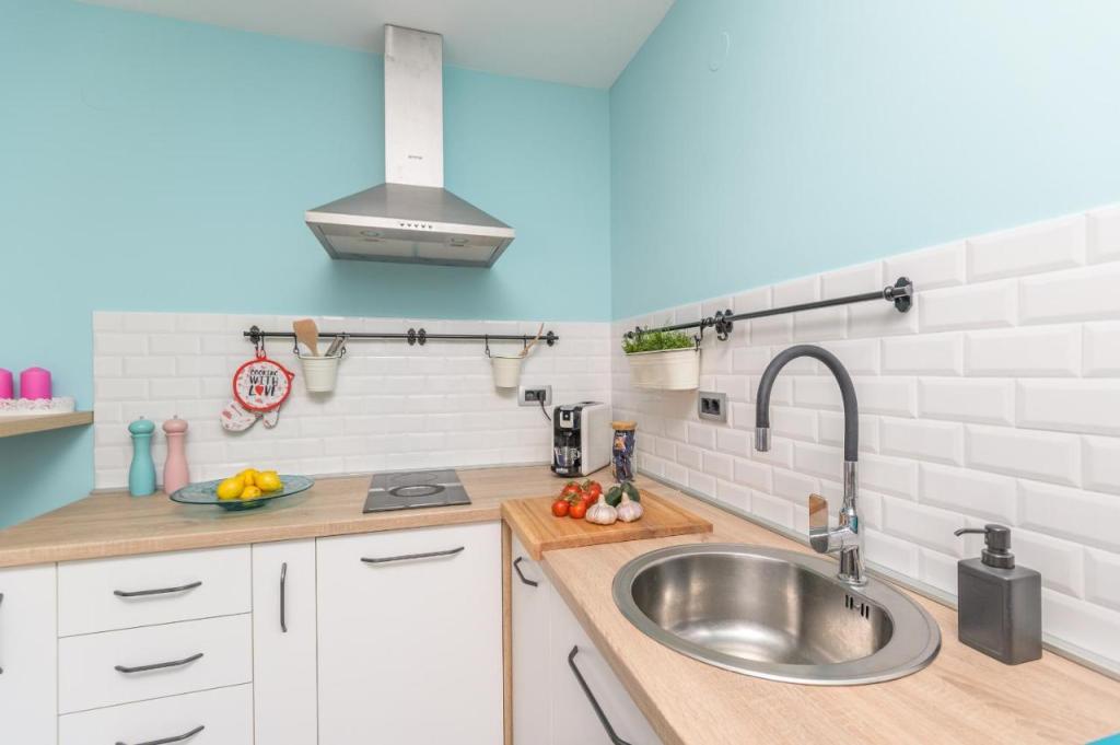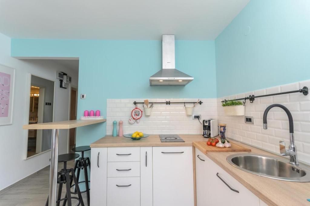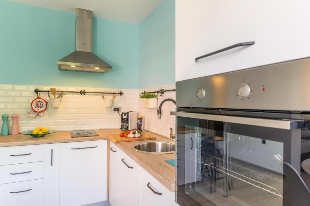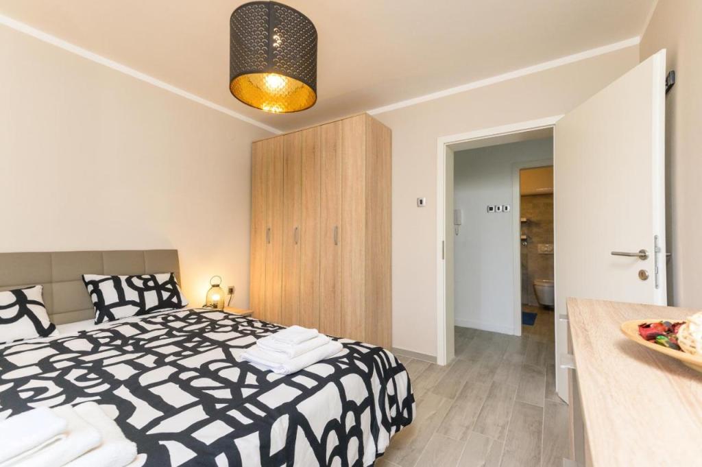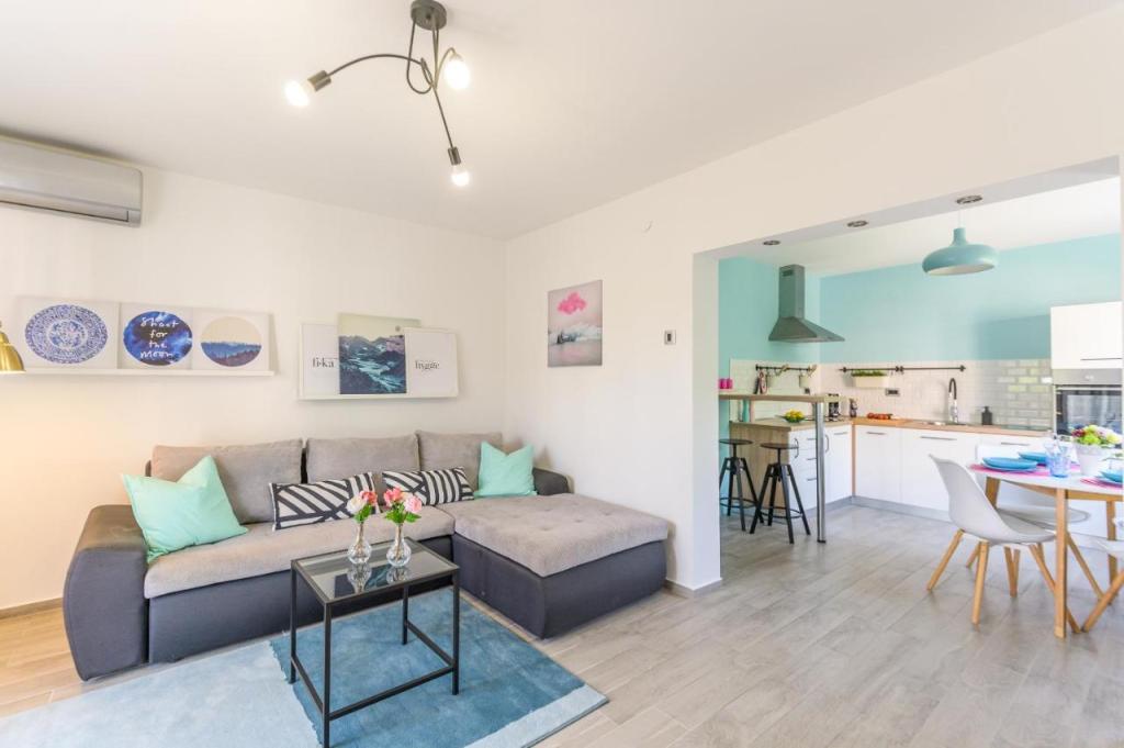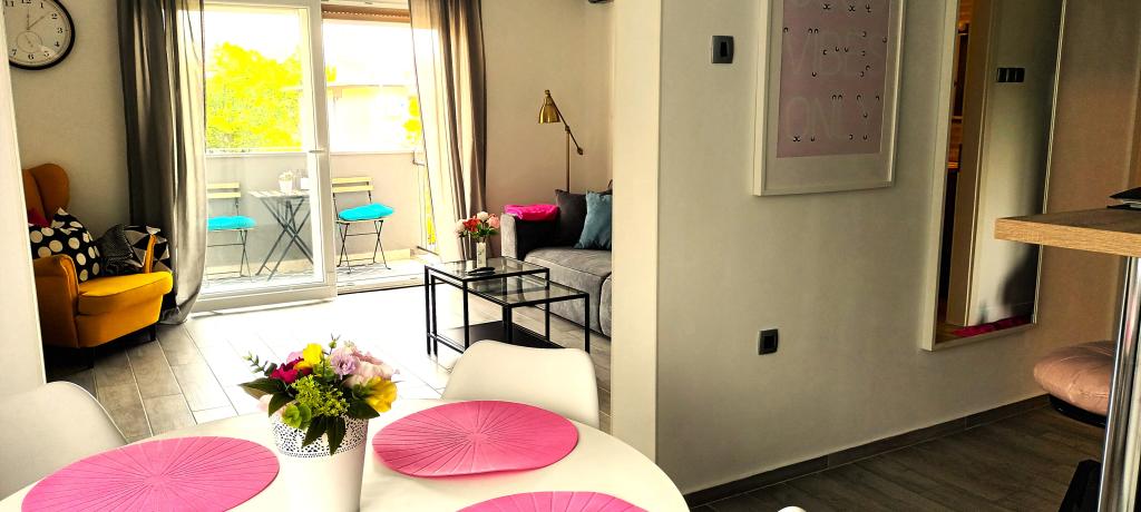 Moderen, na novo urejen apartma, izjemno prijeten ambient, luksuzno urejena kopalnica, udobna soba z zakonsko posteljo za 2 osebi, popolnoma opremljena nova kuhinja, prostorna dnevna soba z razkošnim raztegljivim kavčem za 2 osebi. TV 160 cm /netflix, hitri internet, Nahaja se v mirnem predelu Opatije, 800 m od morja in centra Opatije, 70 m od trgovskega centra Spaar (10 minut hoje).