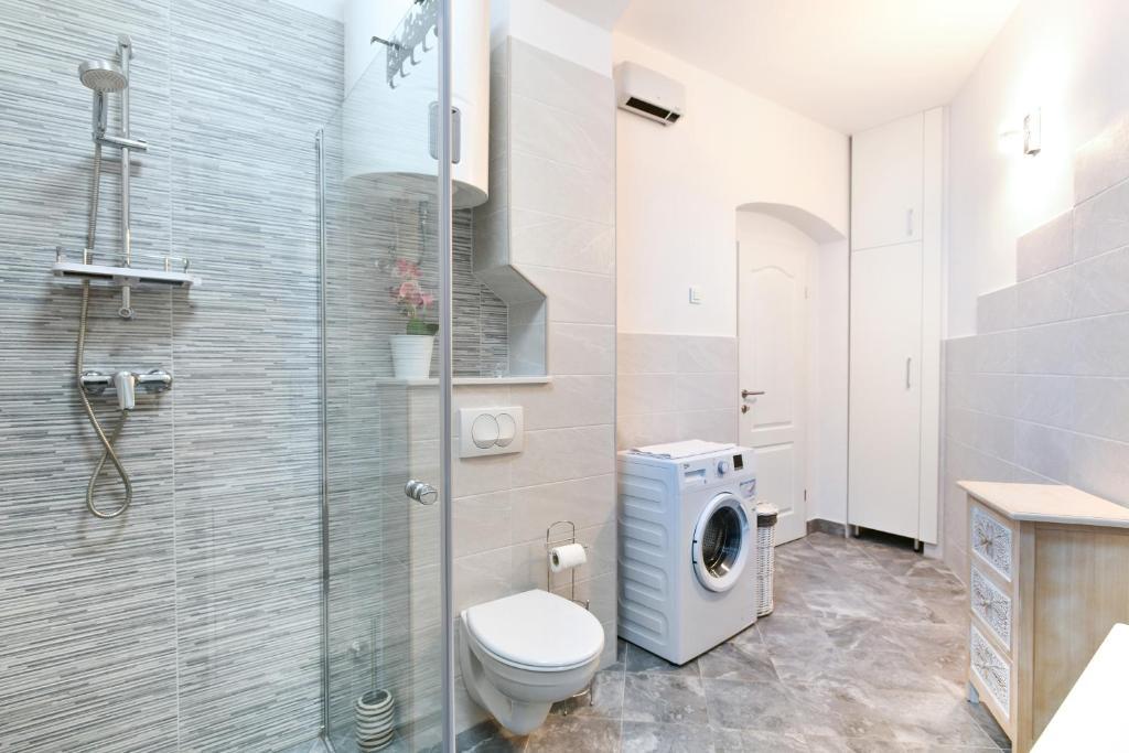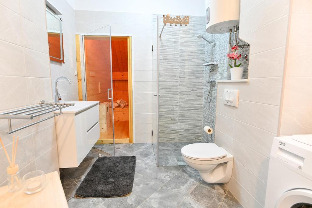 Parkirišče je zasebno in BREZPLAČNO, nahaja se pred apartmajem. Ostale ugodnosti: klimatska naprava, ogrevanje, aparat za kavo, mikrovalovna pečica, pečica, popolnoma opremljena kuhinja, pomivalni stroj, pralni stroj, vrtna garnitura (miza in stoli), tuš kabina. Glavna postelja 160x200 Dodatno ležišče: raztegljiv kavč 140x200, z nadvložkom za vzmetnico, za 2 osebi.