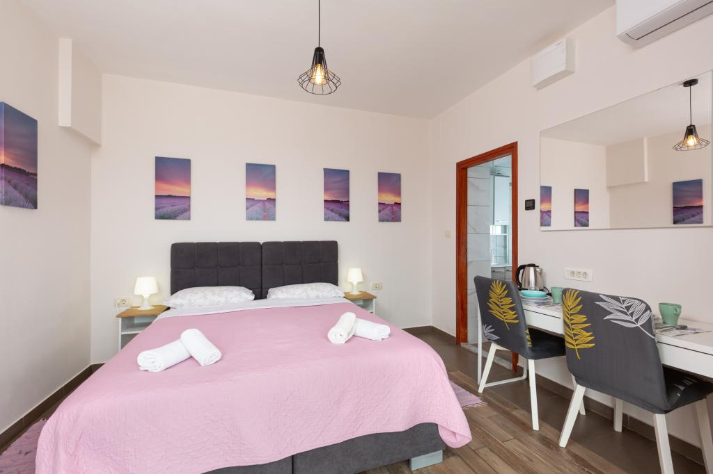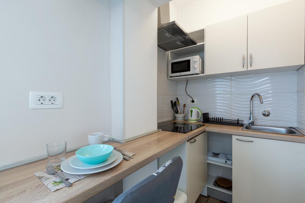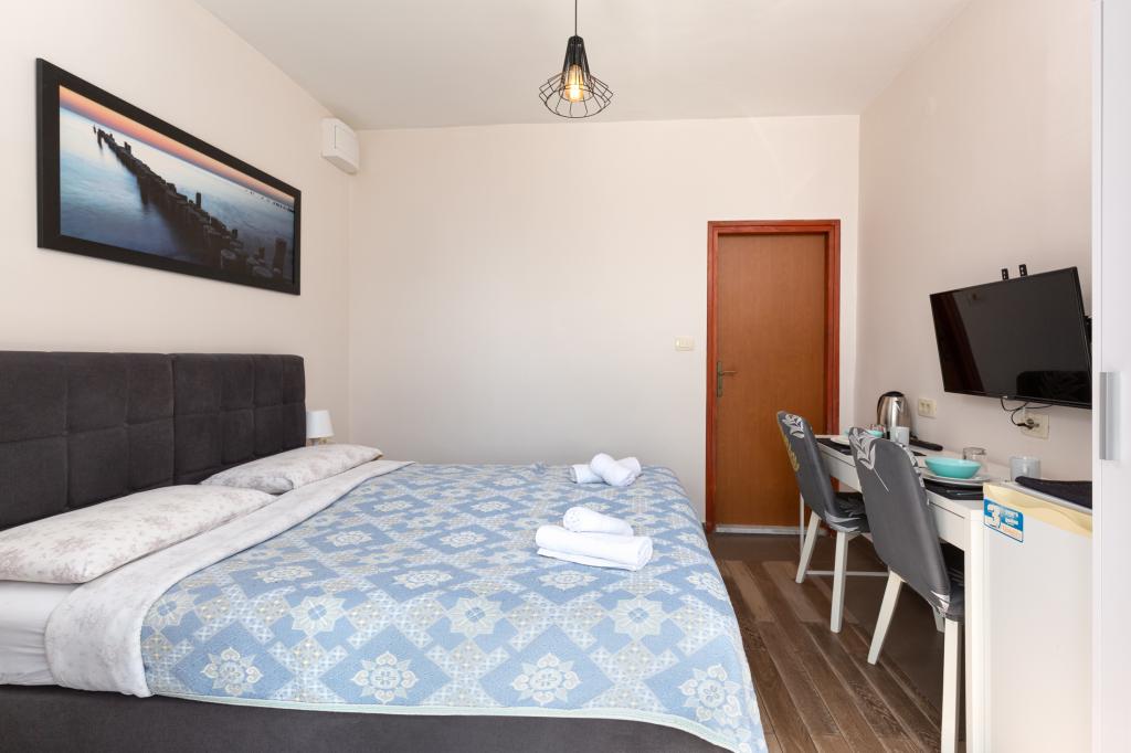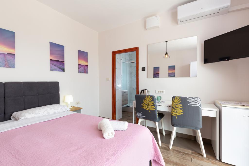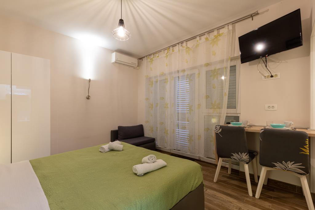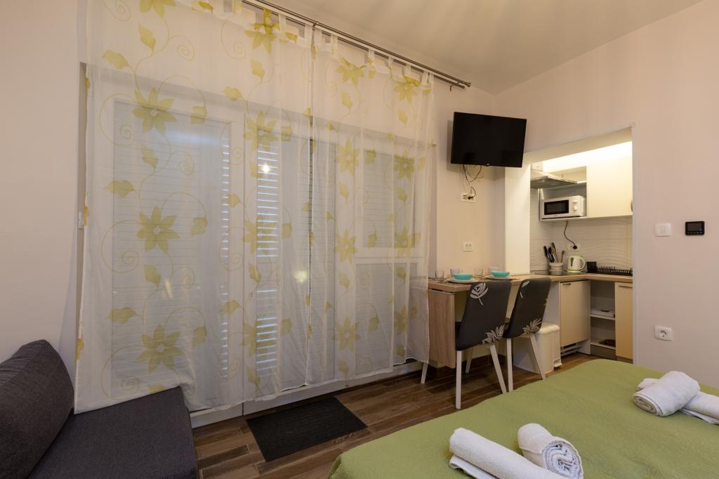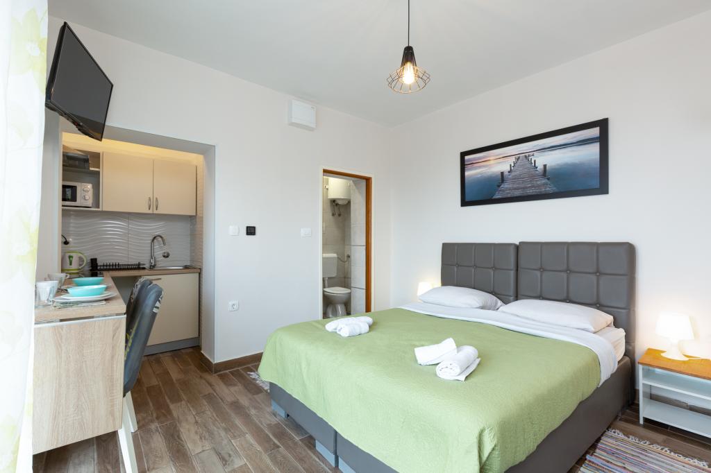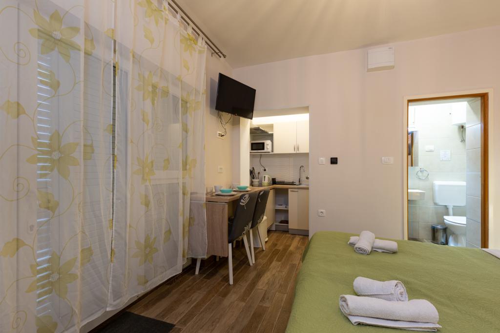 Preberite več Namestitvene enoteUra odhoda: 08:00-10:30 Ura prihoda: 15:00-24:00 Plačilo: gotovina Hišni ljubljenčki niso dovoljeni. Za tretjo osebo v studiu+1 in peto osebo v A3+2 se doplača 8 EUR na noč. Za daljša bivanja nudimo popuste!