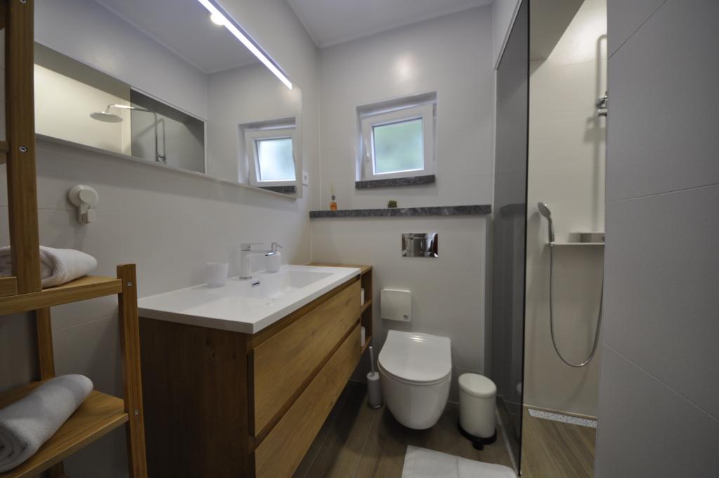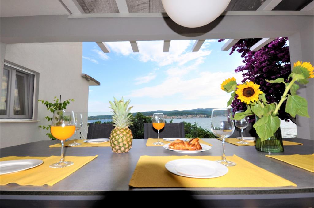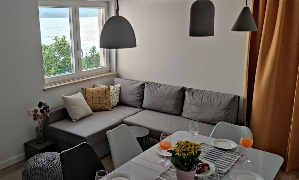 Na novo prenovljeno stanovanje v mirnem okolju, Perna, blizu Orebića. Apartma se nahaja v prvi vrsti do morja, prodnata plaža. Glede na osupljiv del je Viganj, priljubljeno počitniško mesto številnih deskarjev in ljubiteljev morskih športov. Terasa ponuja čudovit razgled na mesto in otok Korčulo. Stanovanje sestoji iz dveh dvoposteljnih spalnic, majhnega stranišča, kopalnice, kuhinje in jedilnice. Terasa je 25 m.