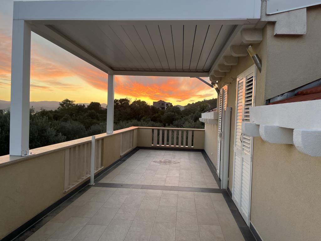 Naša hiša se nahaja na južni strani polotoka Pelješac, v idiličnem mestecu Orebić, obdanem z goro Sveti Ilija na eni strani in plažo na drugi. Nahaja se v središču mesta, hkrati pa je mirna lokacija, z balkona pa se odpira pogled na morje. Številne plaže, trgovine in vse vsakodnevne potrebščine so enostavno dostopne peš. Tudi brez avtomobila lahko izbirate med številnimi restavracijami in kavarnami z regionalno kuhinjo ob promenadi ob plaži ali v zgodovinskem starem mestnem jedru otoka Korčula, ki je oddaljeno 15 minut vožnje z ladjo. Tisti, ki radi kuhajo sami, lahko uporabljajo moderno in popolnoma opremljeno kuhinjo v apartmaju ali žar na vrtu in preživijo večer v prijetnem vzdušju na balkonu. Hiša je bila zgrajena leta 2016. Ima štiri počitniške apartmaje velikosti 50 kvadratnih metrov. Apartmaji so svetli in moderno opremljeni, z udobno in udobno namestitvijo. Vsak apartma ima teraso ali balkon velikosti 15 kvadratnih metrov. Hiša ima vrt z oljkami in sadnim drevjem, vgrajen žar in parkirišče. Oddajata se dva apartmaja v zgornjem nadstropju.