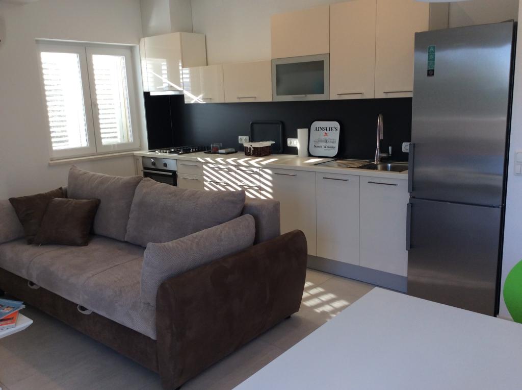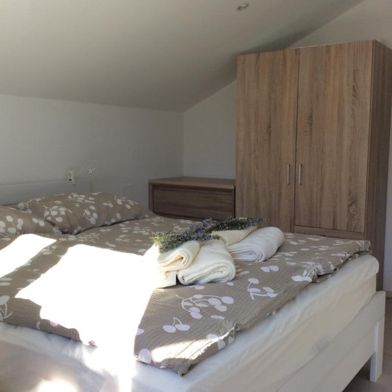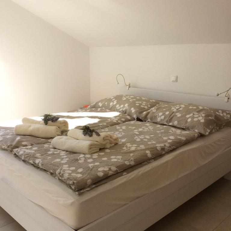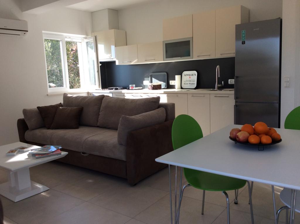 V zgornjem nadstropju sta na voljo dva apartmaja za najem z naslednjimi ugodnostmi: • Dvosobni apartmaji • Balkon s pogledom na morje • Dnevna soba z udobnim raztegljivim kavčem • Popolnoma opremljena odprta kuhinja (glejte opremo) • Jedilnica • Spalnica (ena zakonska postelja) • Tuš, WC • Klimatska naprava • Satelitska TV • Internet WLAN • Toaletni papir, milo in detergent za pomivanje posode so vključeni v ceno. • Brisače in posteljnina se menjajo po 7 dneh in so vključeni v ceno. Poleg številnih plaž in čudovite narave območje ponuja številne možnosti za aktivnosti. Zgodovinski otok Korčula ("Mali Dubrovnik") je oddaljen le 15 minut vožnje z ladjo, vinorodna regija na Pelješcu ponuja možnost degustacije vin v vinarnah, v bližnjem Vignju pa boste našli ljubitelje jadranja na deski in kajtanja. Ob vhodu v Orebić se nahaja kamp, kjer lahko uživate v različnih športnih aktivnostih.