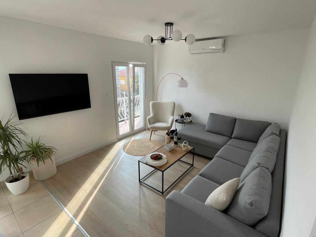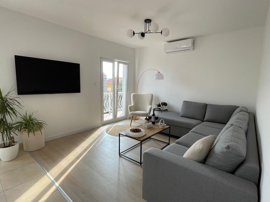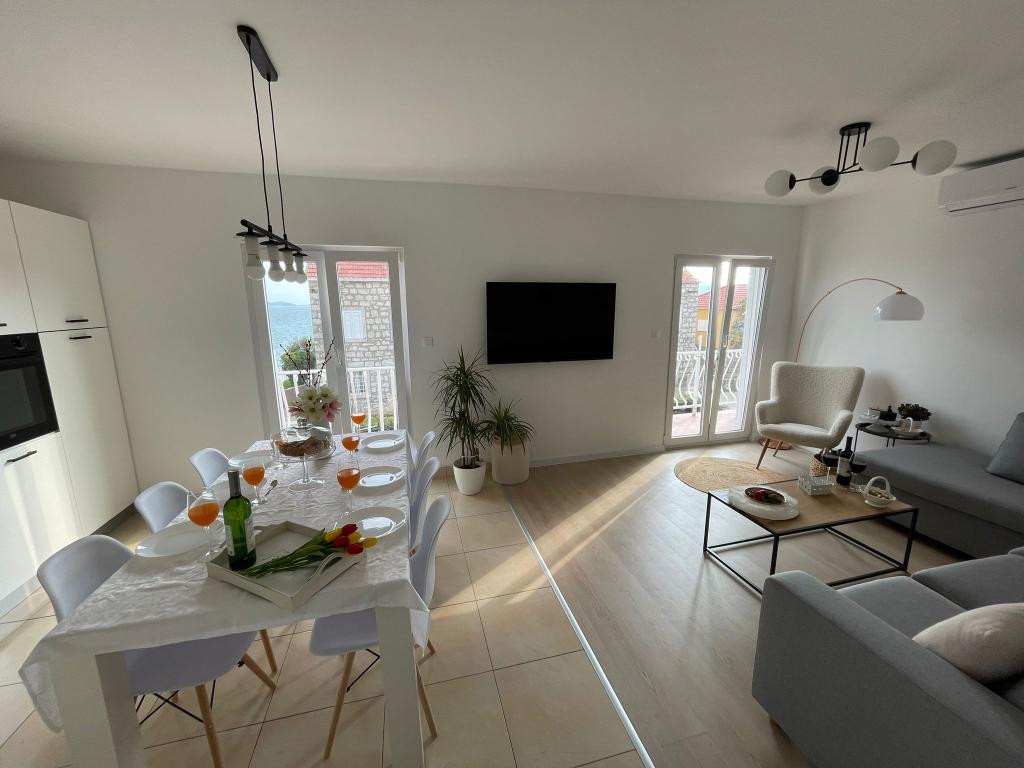 Prostoren in dobro vzdrževan apartma s pogledom na morje, opremljen z vsemi možnimi dodatki - 2x TV z internetno povezavo, Wi-Fi, klima v dnevni sobi in spalnicah, popolnoma opremljena in moderna kuhinja [velik plus za led aparat in pralni stroj] Enostaven dostop do stanovanja po dvosmerni cesti, veliko parkirnih mest in terasa z udobno vrtno garnituro. Lokacija v centru mesta, le nekaj korakov od plaže, pomola in številnih restavracij, postavlja to stanovanje v ospredje v tem mestu. Ob prihodu nas je pozdravila ljubka gospa, ki nam je pomagala med bivanjem, v samem apartmaju pa nas je pričakala vino, tinktura in sveže sadje ter piškoti v spalnici. Na svoje bivanje imam zelo lepe spomine in apartma iskreno priporočam ljudem, ki cenijo udobje med počitnicami.