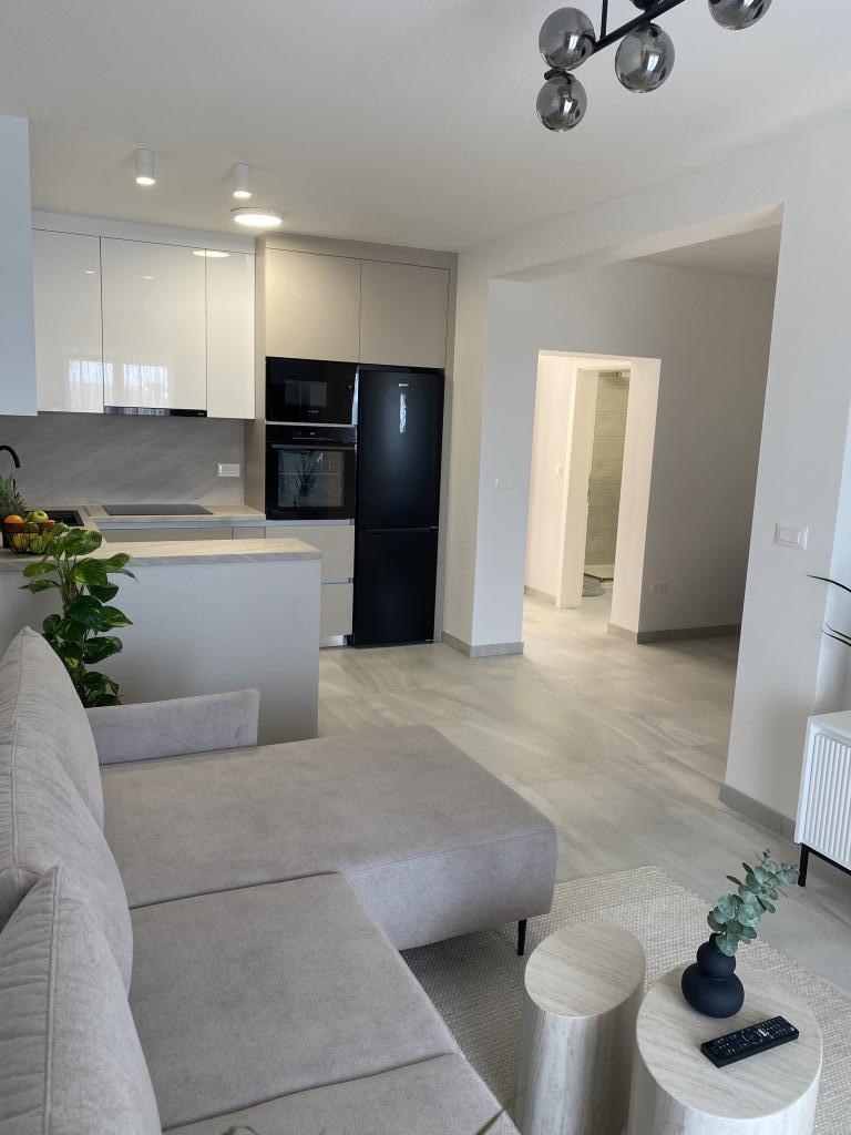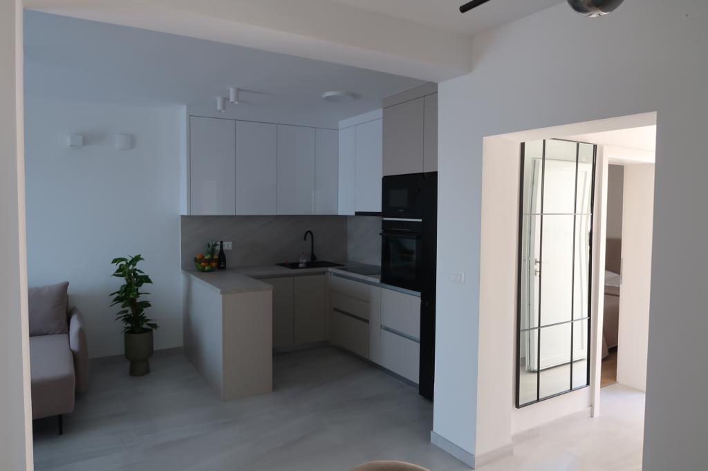 Popolnoma opremljeno in na novo prenovljeno stanovanje. Nahaja se 2 minuti hoje od plaže in 5 minut hoje od centra. Prva trgovina se nahaja 30 m od nepremičnine. V centru so restavracija, kavarna, ribarnica, tržnica, banka, pekarna,... Nastanitev vključuje brezplačno parkiranje in WI-FI. V stavbi je kamin, kjer lahko pečete na žaru. Apartma ima 2 terasi, eno pred vhodnimi vrati z dvema naslanjačema za sprostitev, drugo pa na južni strani s pogledom na morje.