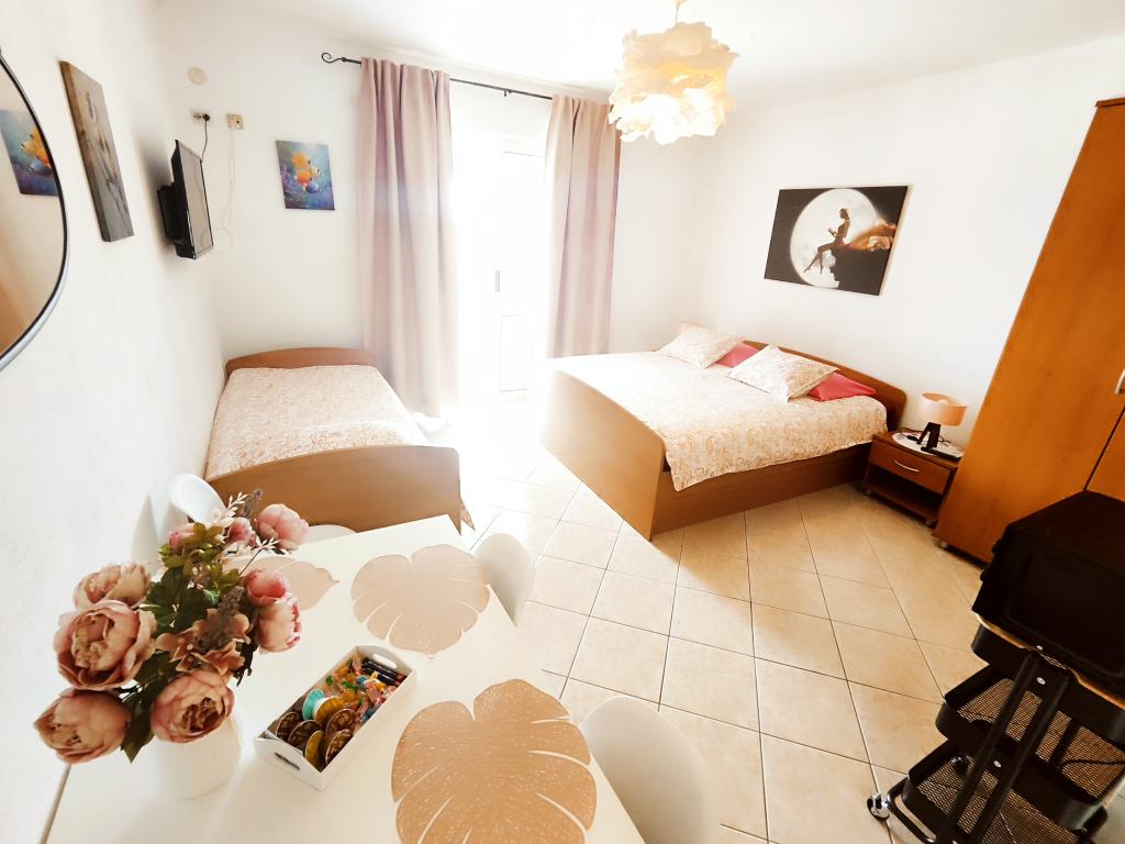 Preberite več Namestitvene enoteOb rezervaciji se plača predplačilo v višini 30%, preostanek pa se plača ob prihodu. Prihod v objekt je 14.00 in odhod do 10.00, klimatska naprava se zaračuna 5Euro na dan. Na dar steklenice kakovostnega vina gostitelja :)