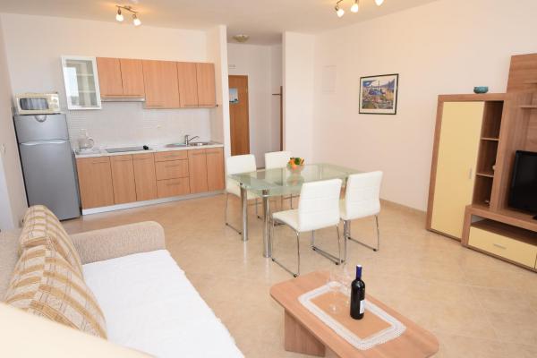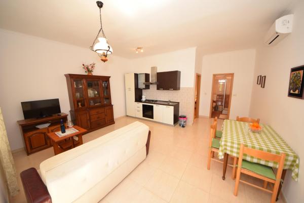 Oba apartmaja se nahajajo zelo blizu morja, plaža je le 20 metrov, tik ob morju, veliko teraso z ležalniki, pogled na kanal. Zelo blizu restavracij in centra mesta. Oba apartmaja imata svoje mize na balkon.