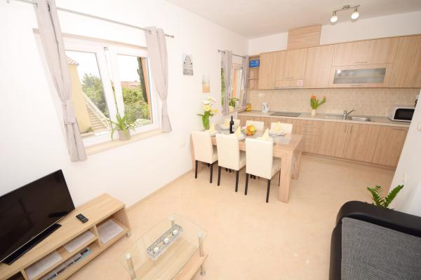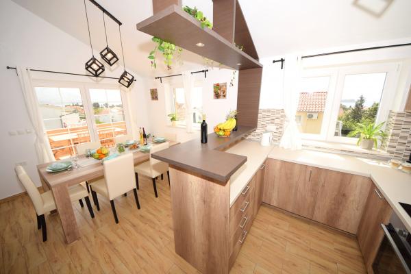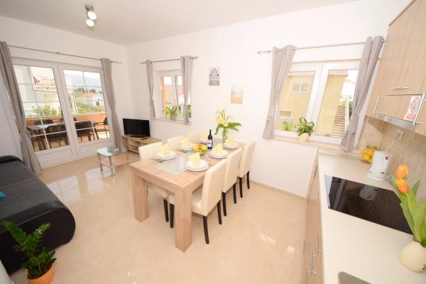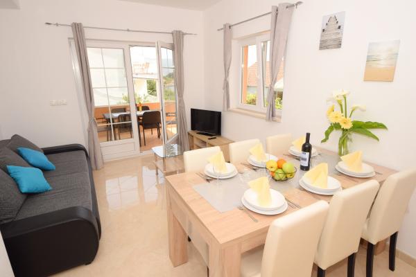 Preberite več Namestitvene enoteVsa povpraševanja pošljite na e-mail ali mobilni telefon. Rezervacija se opravi s predplačilom 25% celotne cene namestitve. Plačilo namestitve se izvede prvi dan po prihodu gosta. Čas prihoda od 14.00 ure, čas odhoda do 10.00 ure. Ponujamo namestitev za minimalno 5 nočitev. Za apartma A2 (2 plus 2) - terasa vključuje balkon s čudovitim pogledom na gore, pogled na morje pa obstaja, vendar je omejen s sosednjo hišo.