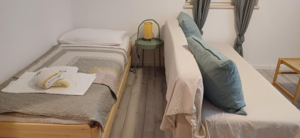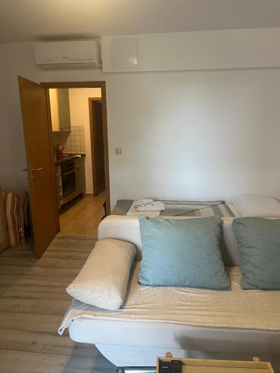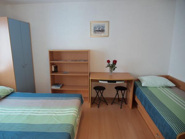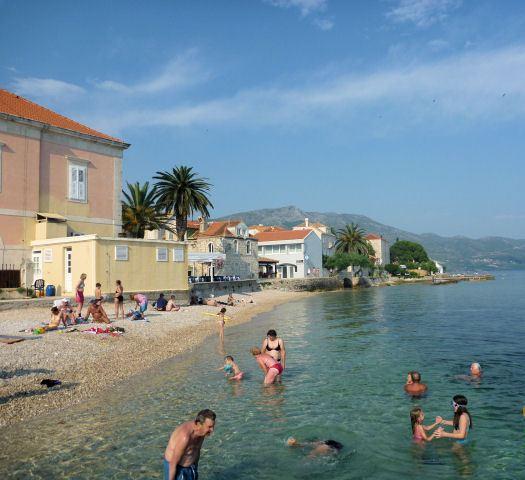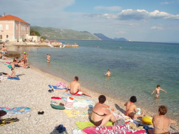 Apartma blizu morja, cca. 80 m od plaže, v centru. Najbližja plaža je prodnata. Apartma v prvem nadstropju obsega 2 spalnici (vsaka soba ima klimo), kuhinjo, SAT-TV, brezžični internet, kad/WC, balkon s pogledom na morje. Parkiranje. Apartma v pritličju obsega spalnico, kuhinjo, ločeno dnevno sobo s kavčem za dve odrasli osebi, satelitsko TV, brezžični internet, klimo, veliko teraso, parkirišče. Prodajamo kakovostna domača vina po ugodni ceni. Nahajamo se približno 100 m od trgovine, pekarne, restavracije in približno 200 m od pristanišča, kjer je čoln za Korčulo, če želite obiskati otok Korčula. Vožnja z ladjo do Korčule traja 15 minut.