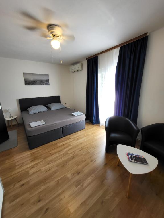 Preberite več Namestitvene enoteCena namestitve vključuje namestitev v apartmaju po predhodnem dogovoru, kot tudi uporabo vseh objektov, namenjenih prijetnemu in brezskrbnemu bivanju. Gostom je na voljo brezplačno zasebno parkirišče v objektu, brezplačen Wi-Fi internet in uporaba klimatske naprave v apartmaju. Apartmaji so popolnoma opremljeni in vsebujejo vse potrebno za vsakdanje bivanje: kuhinjski pribor, jedilni pribor, posodo, brisače in posteljnino. Posteljnina se menja enkrat tedensko, apartma pa je temeljito očiščen in pripravljen za goste na dan njihovega prihoda. Plačilo: Za potrditev rezervacije je potrebno plačilo akontacije v višini 30 % celotne cene namestitve, preostali znesek pa se plača ob prihodu. Možno je tudi plačilo celotnega zneska vnaprej. Prijava in odjava: Prijava je možna od 15.00, odjava pa do 10.00 na dan odhoda. Kapaciteta apartmaja: Največje število oseb na apartma je 4, zaradi česar je idealna izbira za družine ali manjše skupine.