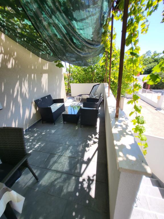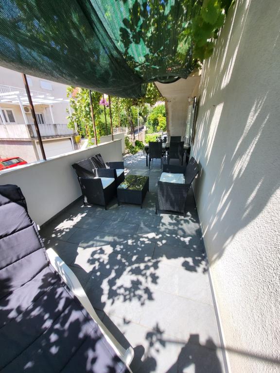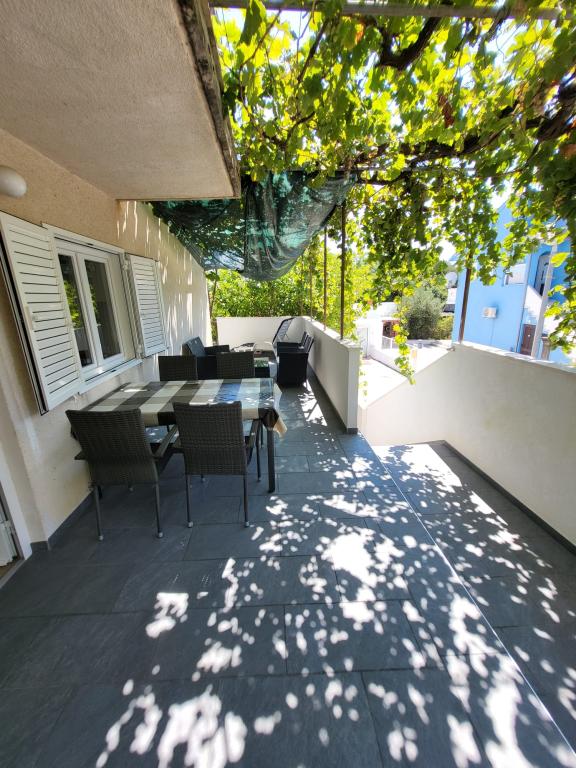 Nahajamo se v samem središču Orebića in vsi potrebni objekti so v hoje oddaljeni. Plaža je le nekaj minut hoje stran. Na razdalji 50 metrov se nahaja trgovina, pekarna, lekarna, kavarna in hitra prehrana. V bližini so tudi drugi objekti, kot so restavracije in druge dejavnosti. Ta nepremičnina z vrtom ponuja klimatizirane nastanitvene enote z balkonom in teraso ter pogledom na morje. Apartma vključuje brezplačno parkiranje, klimatsko napravo, satelitsko televizijo in Wi-Fi. Ima tudi popolnoma opremljeno kuhinjo z vsemi potrebnimi dodatki. Hiša se nahaja v mirni ulici s pogledom na morje, vrt in ulico. Apartma AP1 (ID: 71816): Apartma meri 61 m2 + terasa 16 m2 + balkon 7 m2. Apartma ima kopalnico, 2 spalnici, jedilnico in kuhinjo. Apartma AP2 (ID: 71815): Apartma meri 61 m2 + terasa 4 m2 + balkon 7 m2. Terasa in balkon sta pokrita s tendami za potrebno senco in opremljena z zunanjim pohištvom. Stanovanje ima kopalnico, 2 spalnici, jedilnico in kuhinjo.