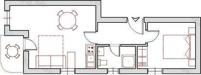 Apartma za dve osebi, možnost dveh dodatnih ležišč (48 m2)