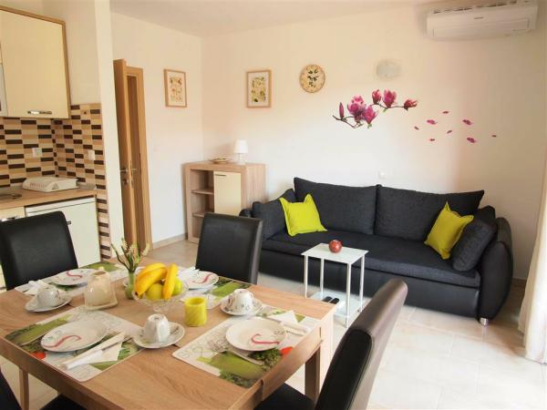 Novi čisti apartmaji, vse, kar potrebujete, dobra kuhinja in aparati, odlična lokacija, miren kraj, 5 minut hoje do plaže, 10-15 minut hoje do centra. Prijateljski, odzivni gostitelji. Priporočeno.