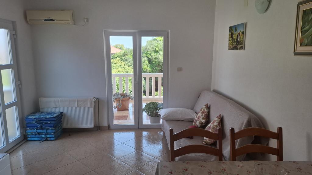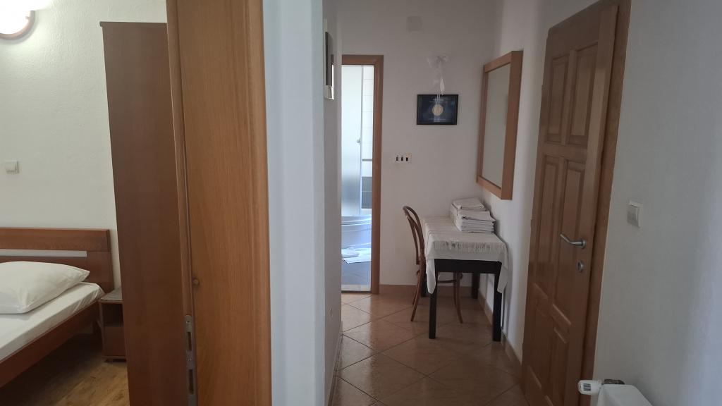 Dva nova, lepo opremljena apartmaja v mirnem predelu Orebića, le 5 minut hoje do morja in plaže. Apartmaji se nahajajo v pritličju in prvem nadstropju družinske hiše. Vsak apartma ima veliko, lepo urejeno teraso s pogledom na morje (apartma v prvem nadstropju) in vrt (apartma v pritličju). Apartma je idealen za družino z otroki ali dva para. Za večje skupine (8-10 oseb) lahko rezervirate dva apartmaja in uživate v druženju. Apartma je sestavljen iz dveh sob, kopalnice, dnevne sobe in kuhinje. V dnevni sobi je na voljo raztegljiv kavč. Nudimo uporabo velikega zunanjega žara. Apartmaji imajo hiter wi-fi in TV. Klimatska naprava je na voljo v vsakem apartmaju. V sklopu objekta imate možnost brezplačnega parkiranja. Potrudili se bomo, da bo vaše bivanje prijetno!