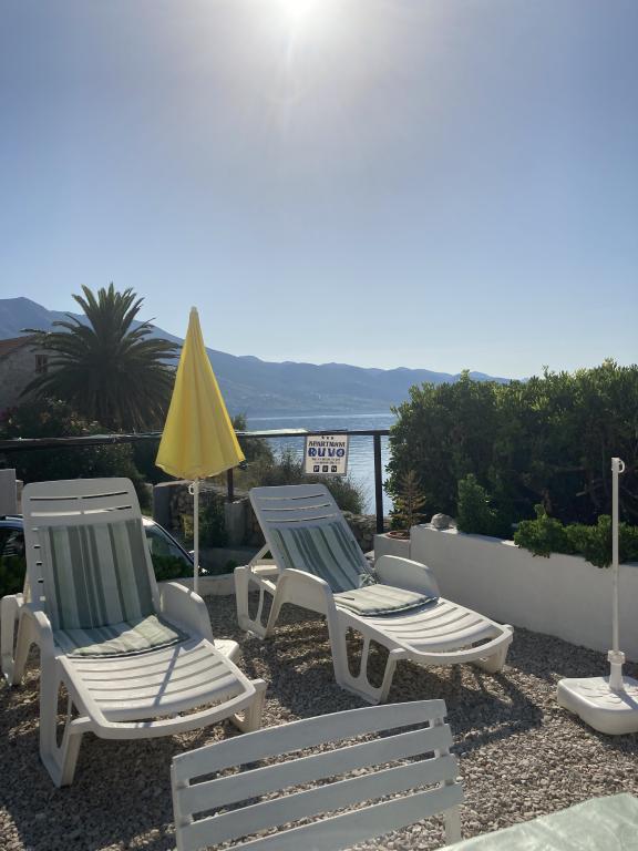 Apartmaji Ruvo se nahajajo na vhodu v Orebić, 10m od morja in 30m od peščene plaže Trstenica. Apartmaji imajo kapaciteto; 6 1, 4, 2 1, 2 in 2 osebi. Lep in velik park pred hišo je primeren za družine z otroki.