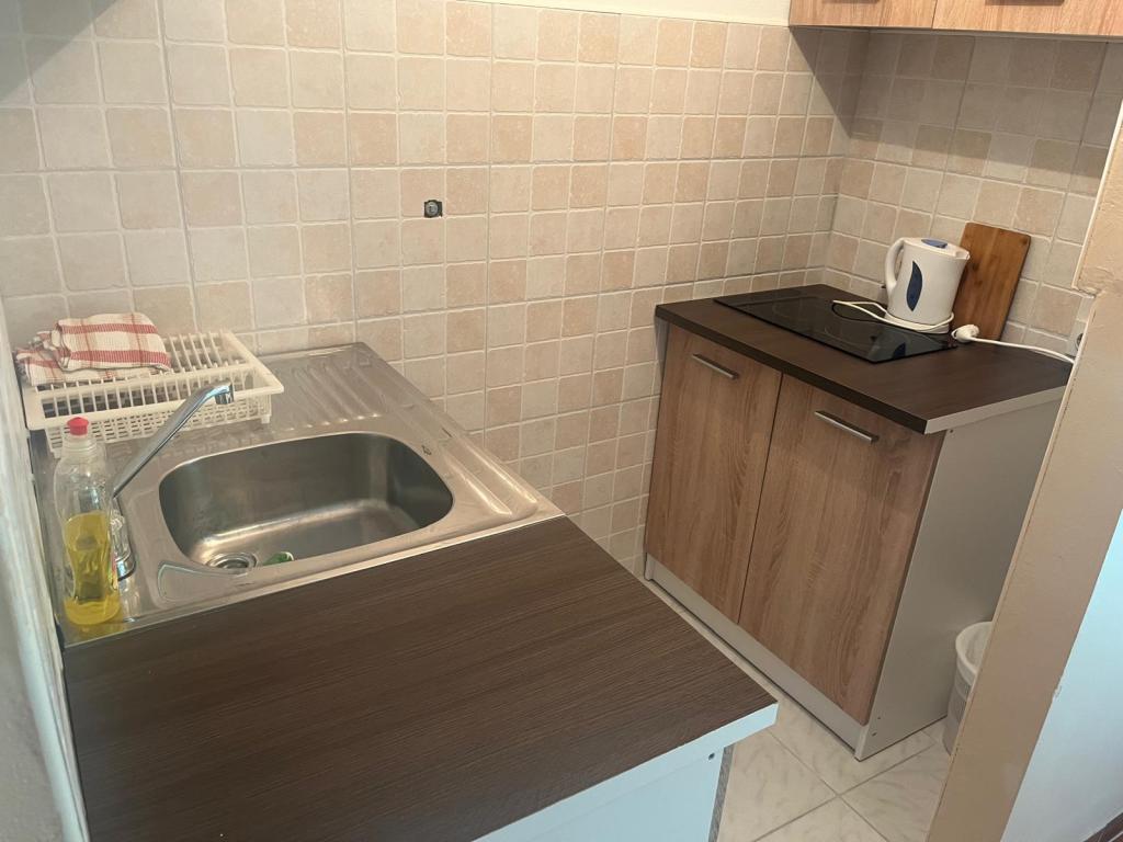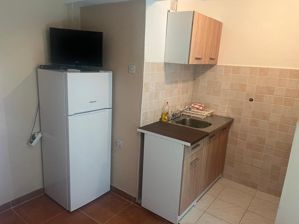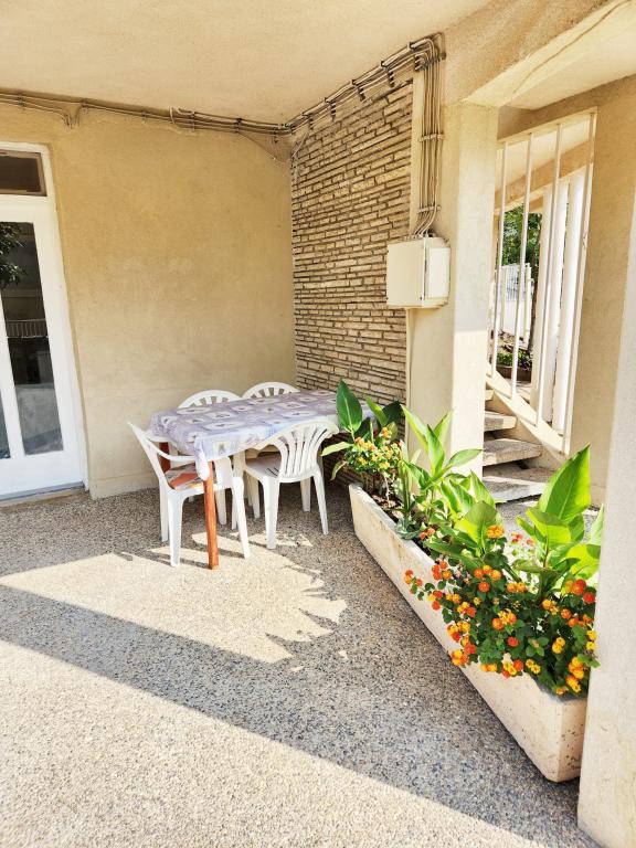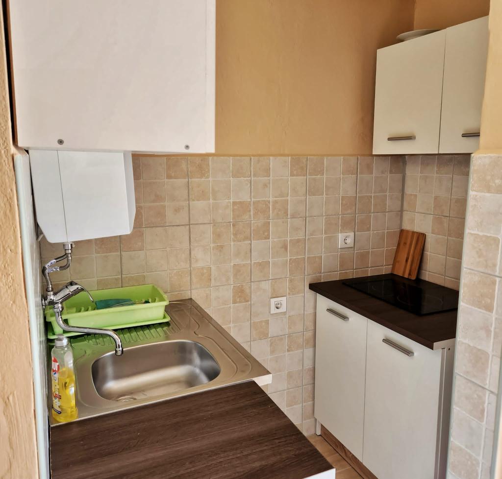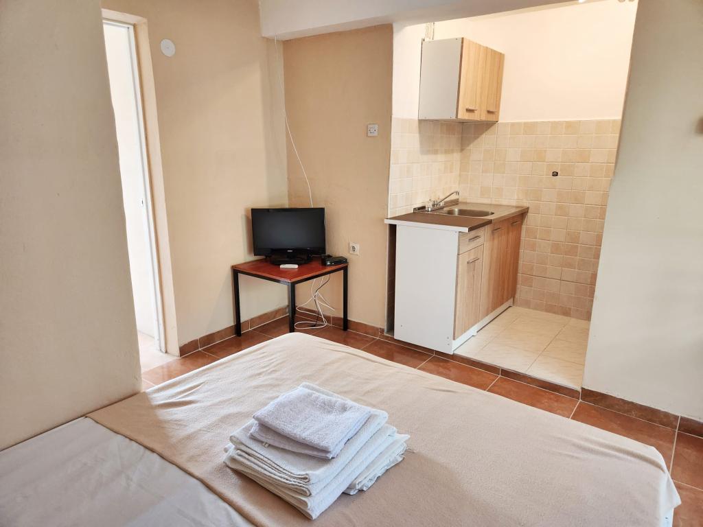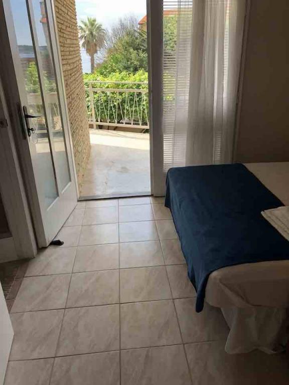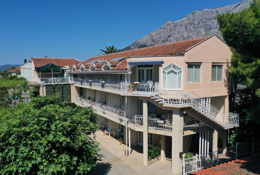 Plačljive dostopnih stanovanj (35 € nočitev za 4 osebe v off sezoni ter 45 EUR noč za 4 osebe v visoki sezoni), 20 m od morja. V stanovanje z dvema balkonoma in dve dvoposteljni sobi prihaja iz zunanjega hodnika. Iz ene spalnice je stanovanje vpisano v kopalnici, in drugi v kuhinji. Topla voda je pridobljen iz sončnega naprave. Parkirišče za avtomobile na dvorišču. Wi-Fi besplatan.Svi apartmaji so klimatizirani. Prednosti - blizu morja (plaže Trstenica), dobro vzdušje, v bližini trgovin, barov in restavracij Negativna - ne dnevno sobo, vendar z dvema balkonoma