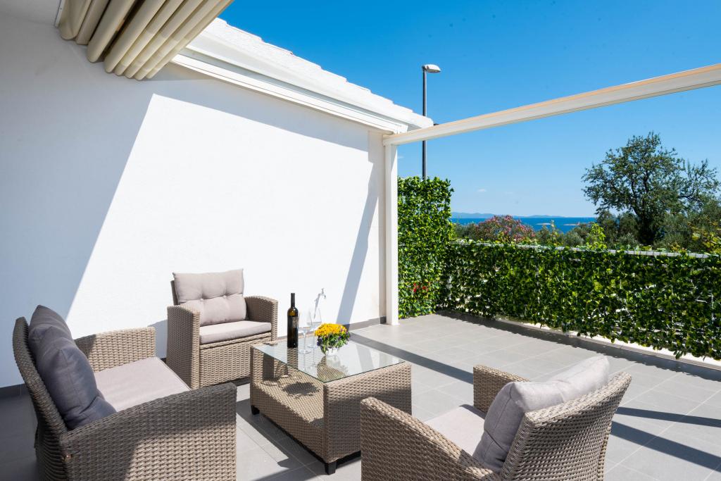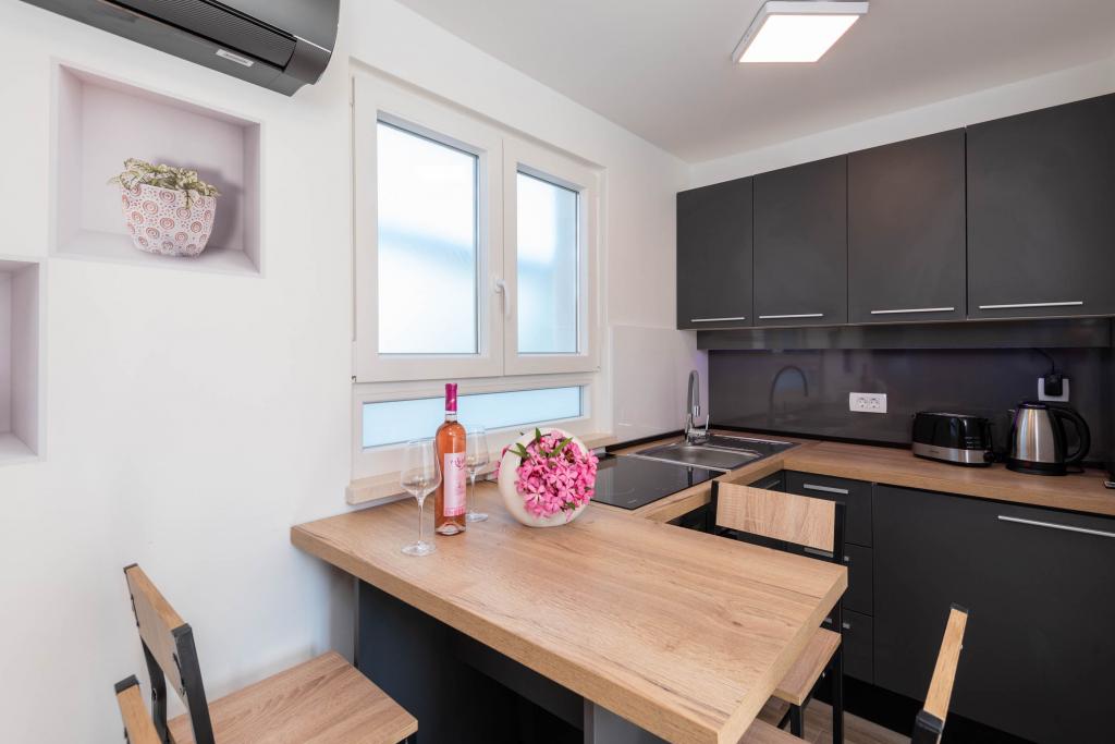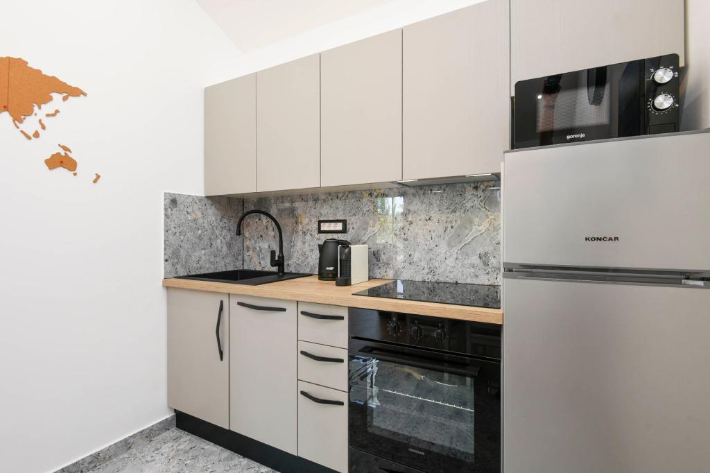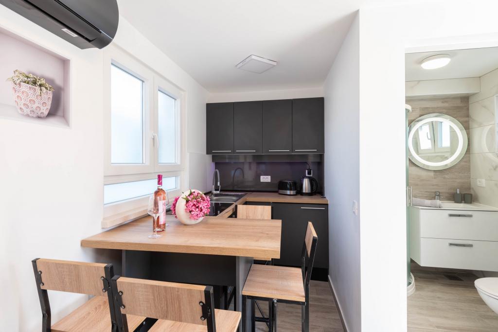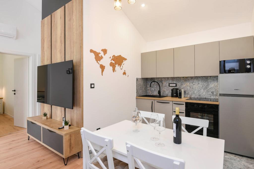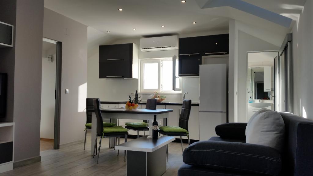 Sodobno urejeni in popolnoma opremljeni apartmaji s pogledom na morje. Blizu plaže, trgovin in restavracij.