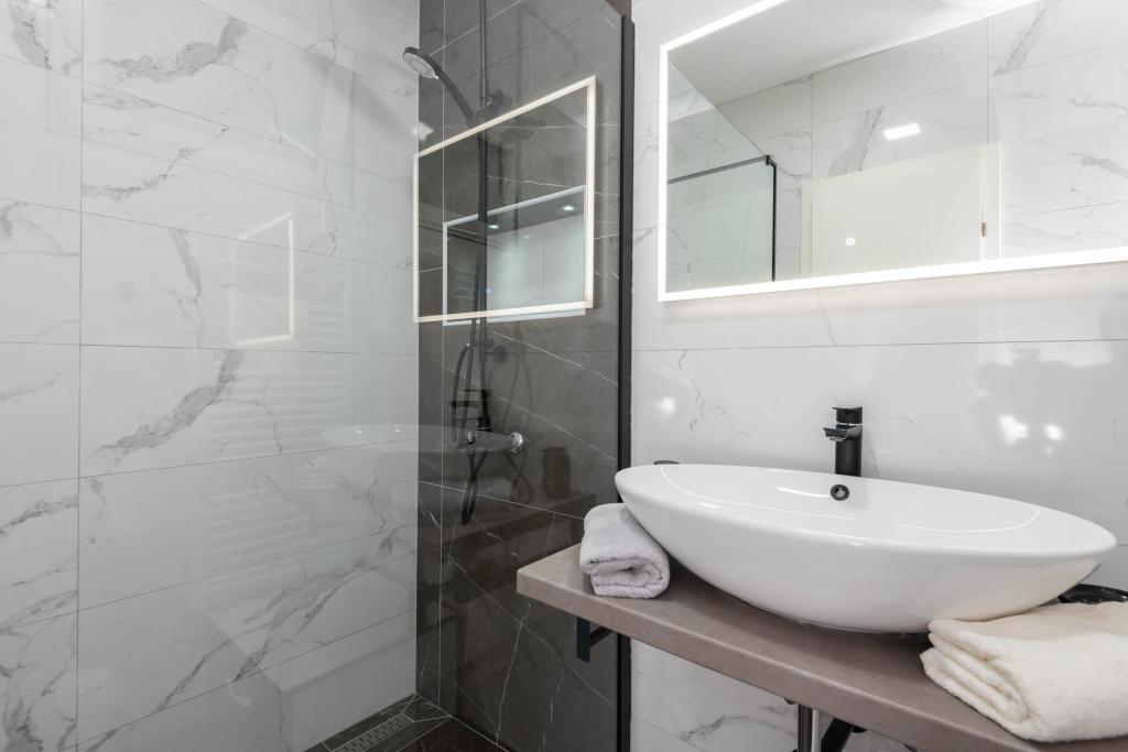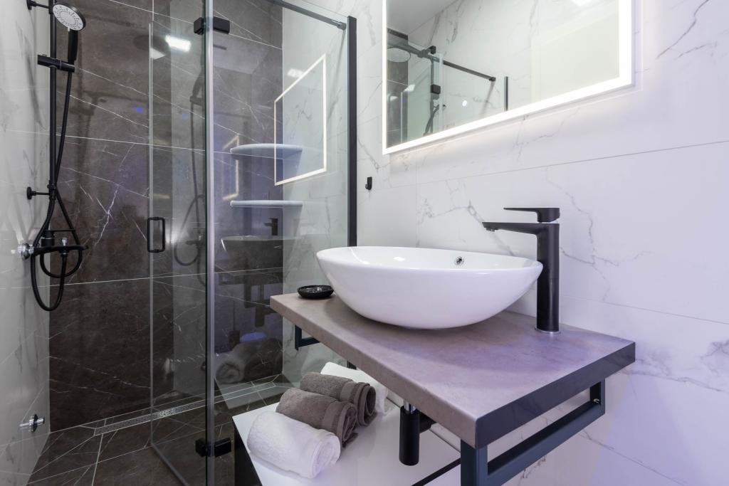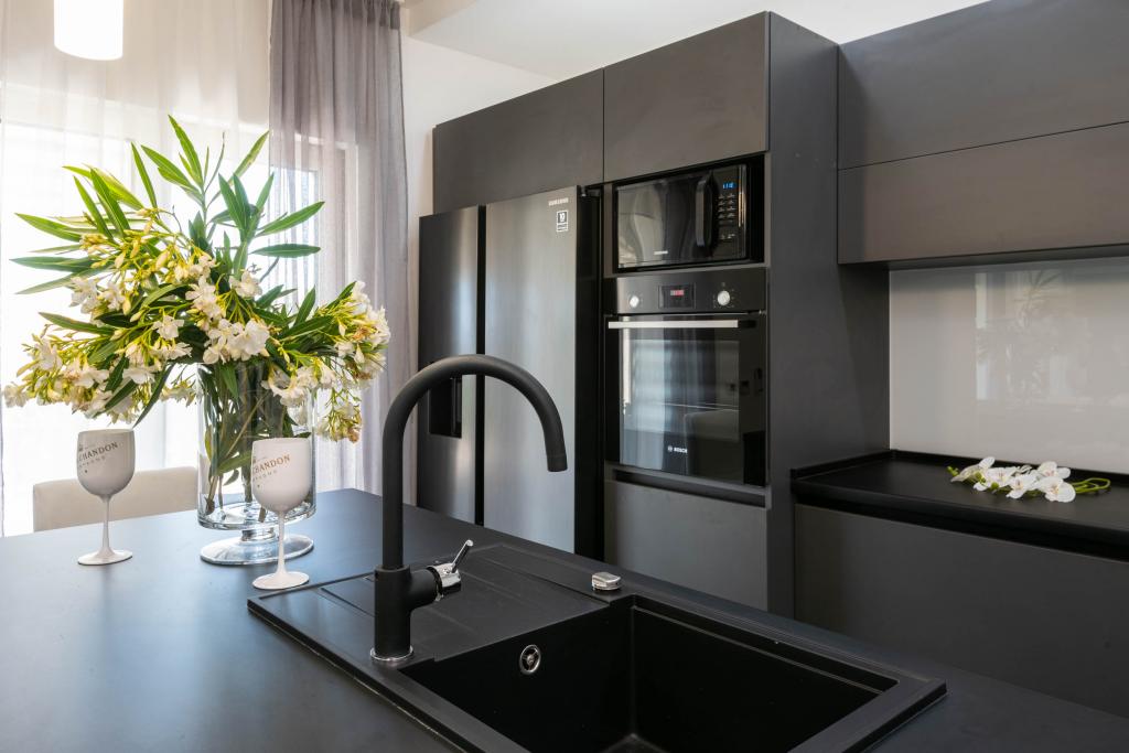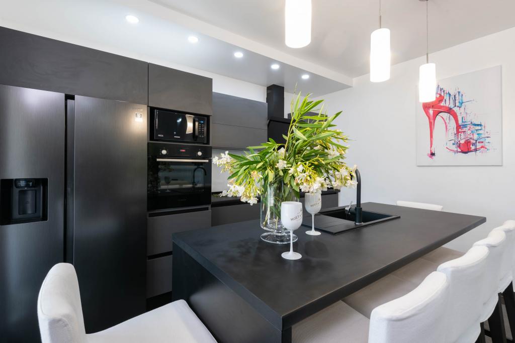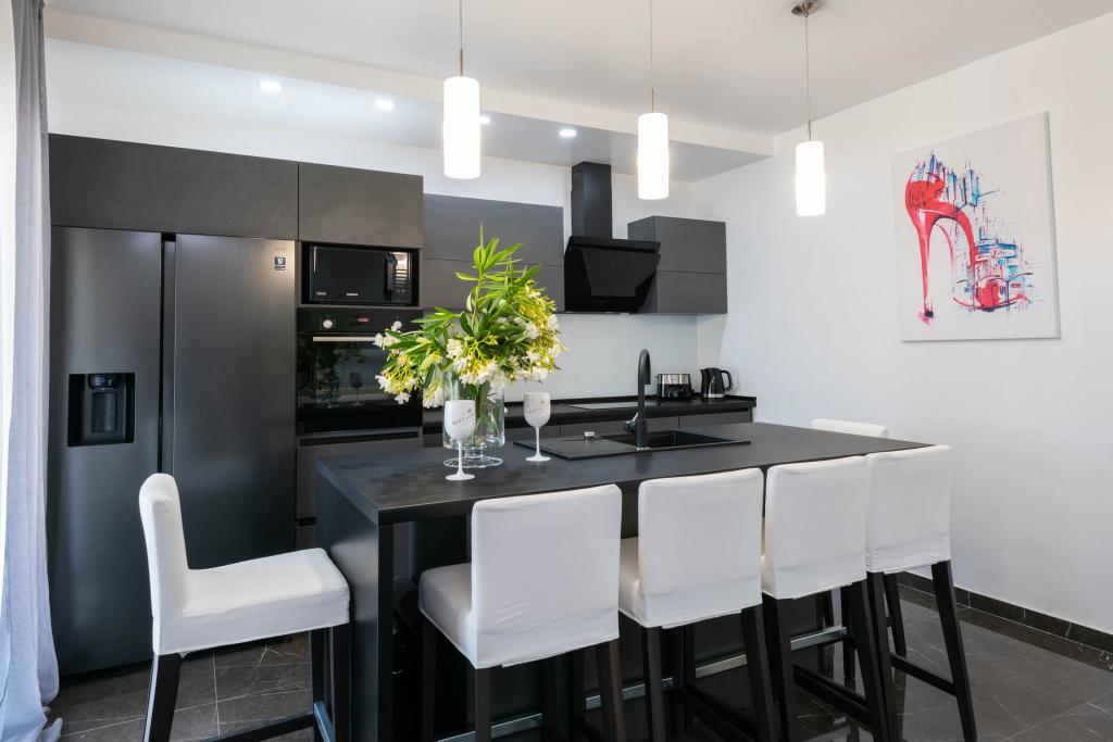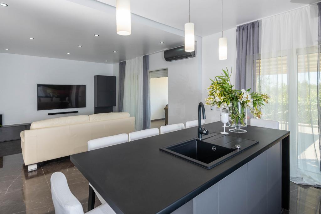 Sodobno urejeni in popolnoma opremljeni apartmaji s pogledom na morje. Blizu plaže, trgovin in restavracij.