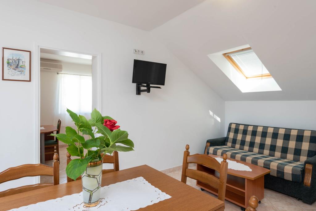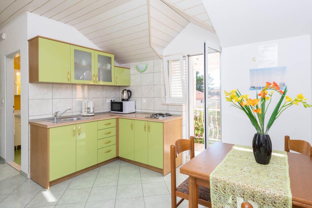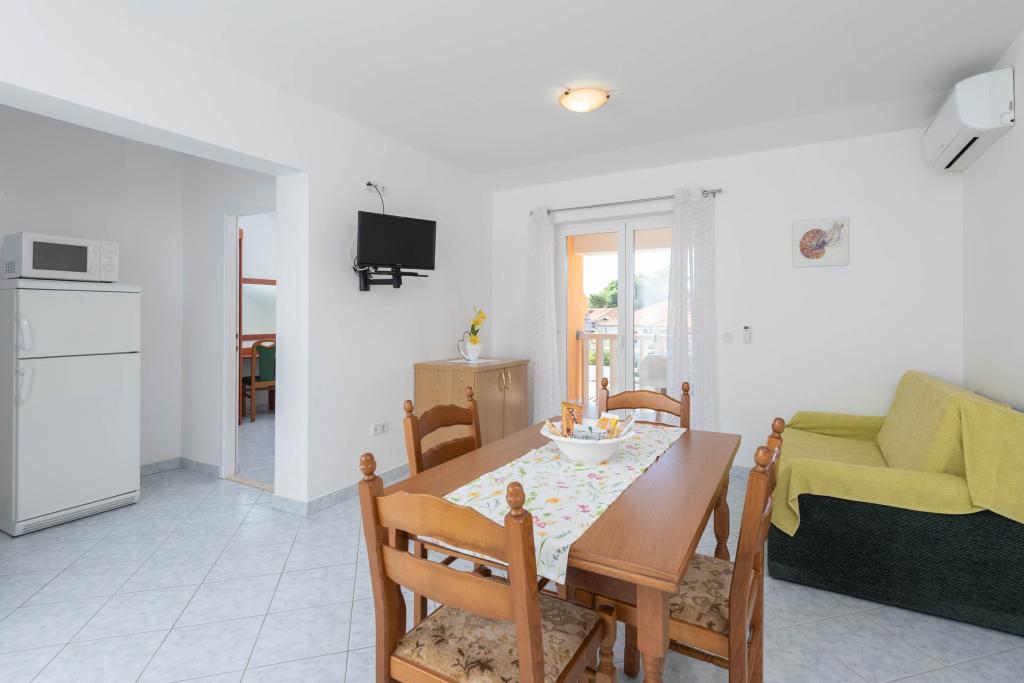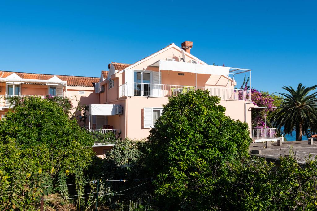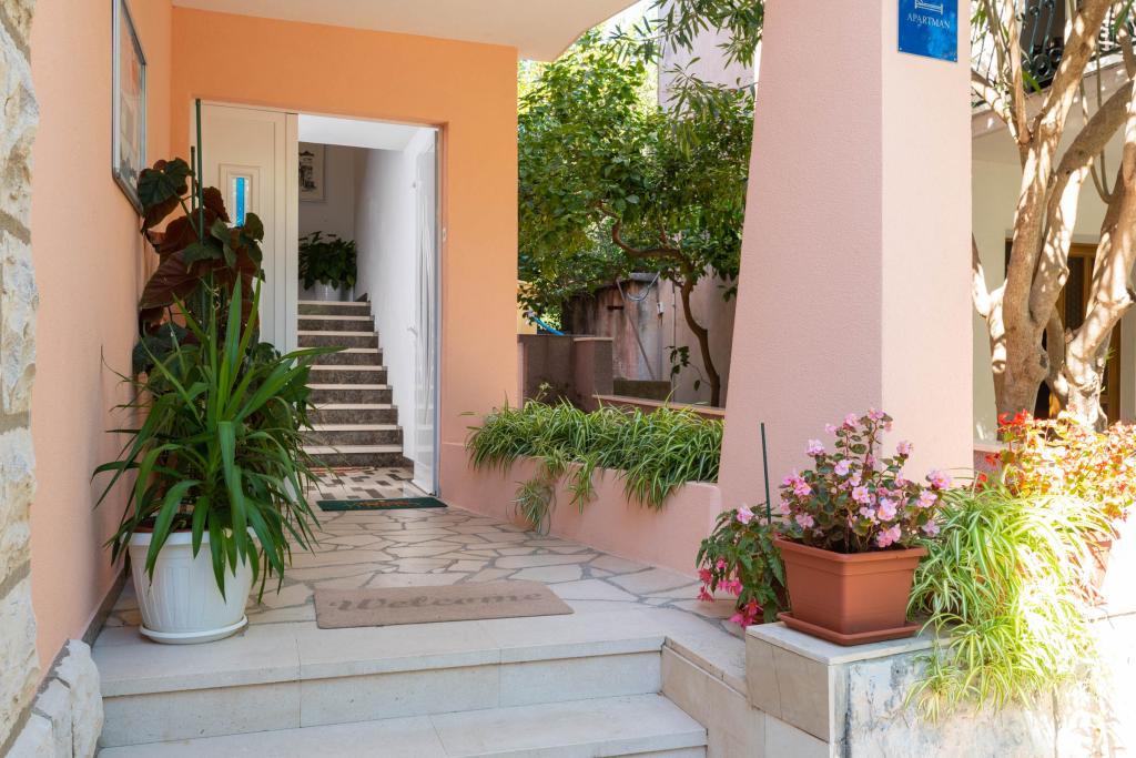"Vila Melita" se nahaja tik ob morju in ob mirni promenadi. Ta kraj je še posebej primeren za vse, ki potrebujejo oddih. Hiša ima čudovit vrt z mediteranskim rastlinjem, kjer se nahaja 32 m2 velik bazen s 14 ležalniki. Na voljo vam je tudi žar. V bližini je tudi zasebno parkirišče za vsak apartma. Vsi naši apartmaji imajo klimatsko napravo, brezplačen WiFi, satelitsko televizijo, popolnoma opremljeno kuhinjo, kopalnico in zasebno teraso. Vključene so tudi brisače in posteljnina. Hiša je v hoje oddaljena od številnih restavracij, kavarn, trgovin in pekarn za vse vaše dnevne potrebe. Najpomembneje pa je, da je glavna mestna plaža Trstenica oddaljena le 40 metrov.