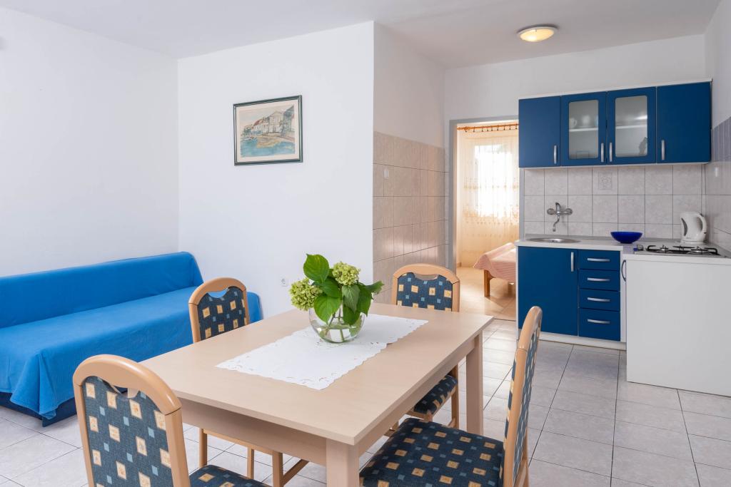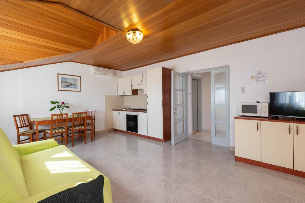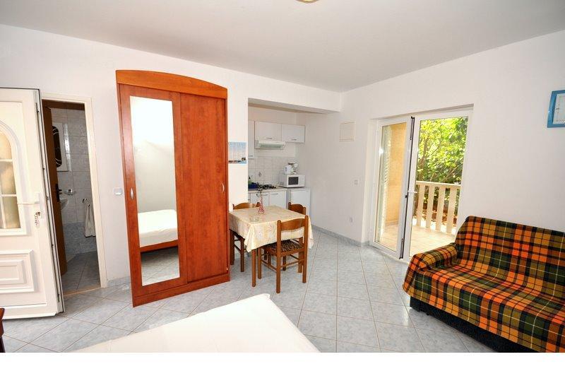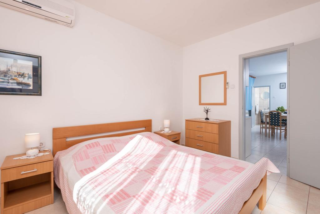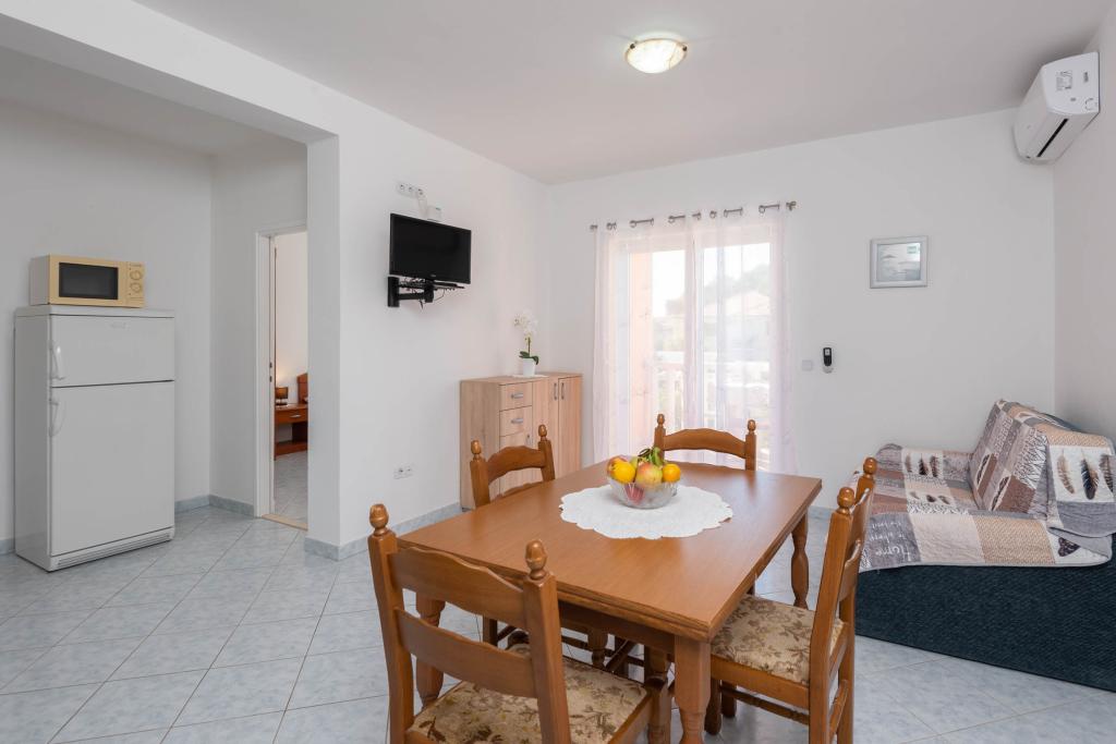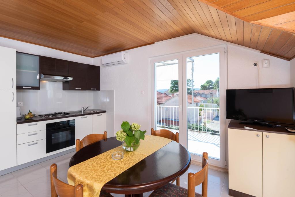 "Vila Melita" se nahaja tik ob morju in ob mirni promenadi. Ta kraj je še posebej primeren za vse, ki potrebujejo oddih. Hiša ima čudovit vrt z mediteranskim rastlinjem, kjer se nahaja 32 m2 velik bazen s 14 ležalniki. Na voljo vam je tudi žar. V bližini je tudi zasebno parkirišče za vsak apartma. Vsi naši apartmaji imajo klimatsko napravo, brezplačen WiFi, satelitsko televizijo, popolnoma opremljeno kuhinjo, kopalnico in zasebno teraso. Vključene so tudi brisače in posteljnina. Hiša je v hoje oddaljena od številnih restavracij, kavarn, trgovin in pekarn za vse vaše dnevne potrebe. Najpomembneje pa je, da je glavna mestna plaža Trstenica oddaljena le 40 metrov.