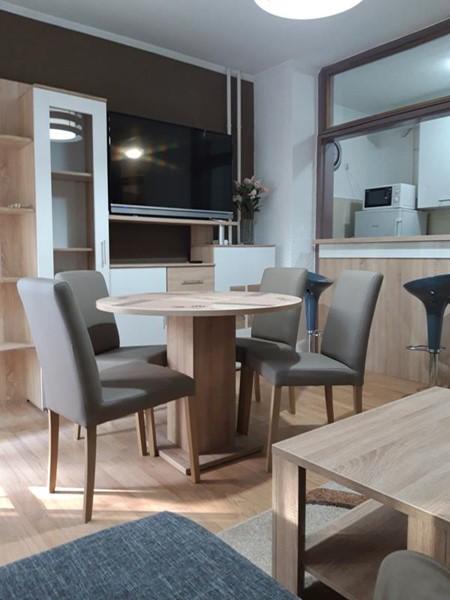 Apartma "Centros" se nahaja v zgornjem centru mesta, v neposredni bližini hotela Osijek. Na novo urejen prostor, popolnoma opremljen. V dnevni sobi je sedežna garnitura, ki se enostavno raztegne v zakonsko posteljo, jedilna miza, velika TV, šank z barskimi stoli. V spalnici je zakonska postelja za dve osebi in kavč kot pomožno ležišče, omare, komoda, ogledala, TV, pisalna miza, vgradna kuhalna plošča in pečica, hladilnik z zamrzovalnikom , pomivalni stroj. V kopalnici je tuš kabina, pralni stroj.. Celoten prostor je klimatiziran, ima centralno ogrevanje in WiFi. Stanovanje se nahaja v centru mesta, v bližini vseh pomembnih mestnih objektov (gledališče, katedrala, hoteli, banke, promenada ob reki Dravi, restavracije, številne kavarne...).