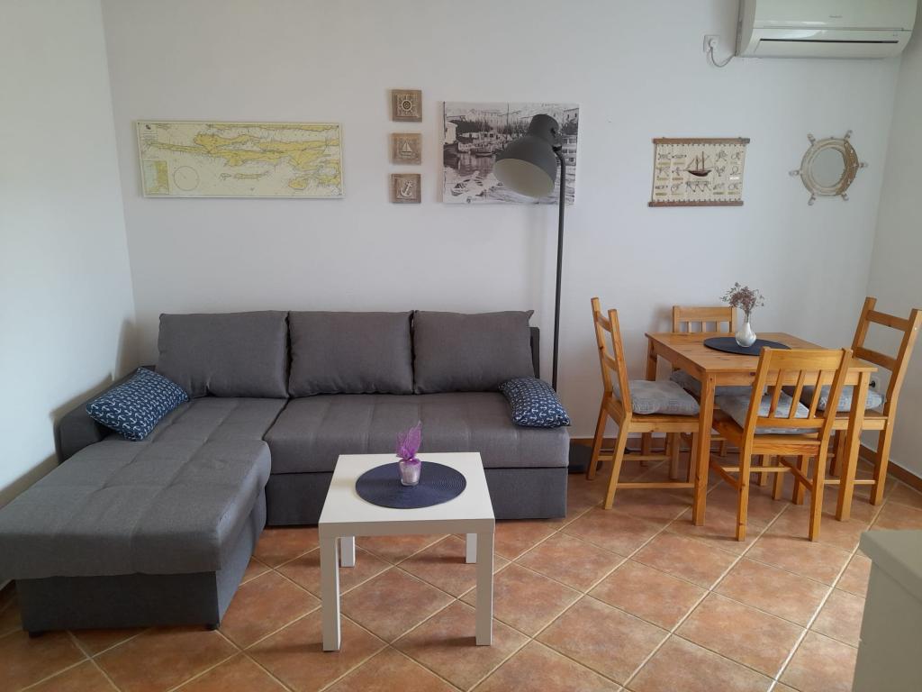 Popolnoma opremljen apartma v mirnem kraju Mandre, na otoku Pagu. Blizina plaže, parkirišče, klima, žar, pogled na morje, komarniki, wifi, sat tv, tv.