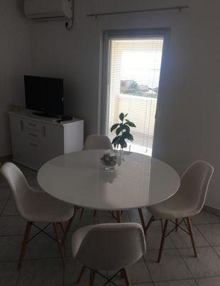Popolnoma opremljen apartma (40 m2) na otoku Pag (Mandre). Apartma ima 1 spalnico z zakonsko posteljo, dnevno sobo z raztegljivim kavčem, kuhinjo, kopalnico s tušem in veliko teraso (25 m2). Apartma se nahaja v družinski hiši v prvem nadstropju v bližini centra, zagotavlja vam izjemen mir in na dvorišču je velik vrt z mizami, kamin, varovano parkirišče ..