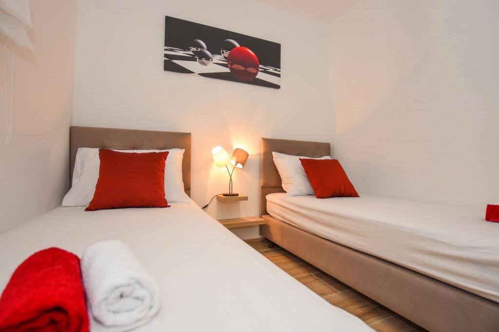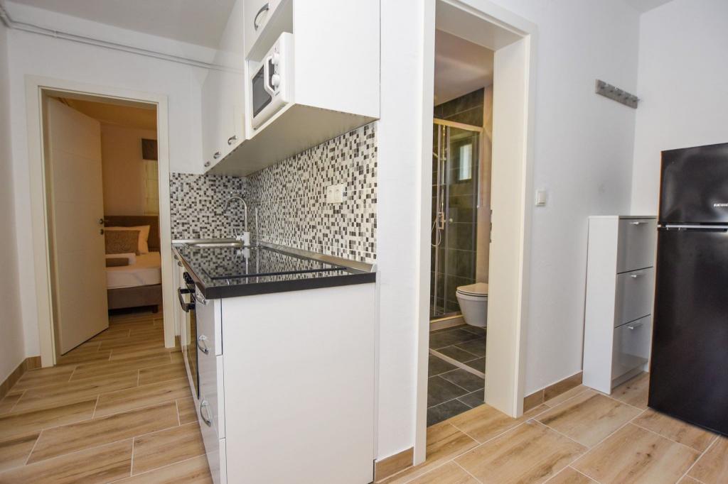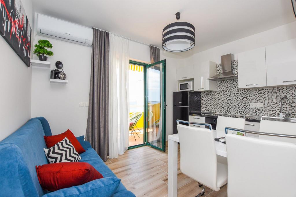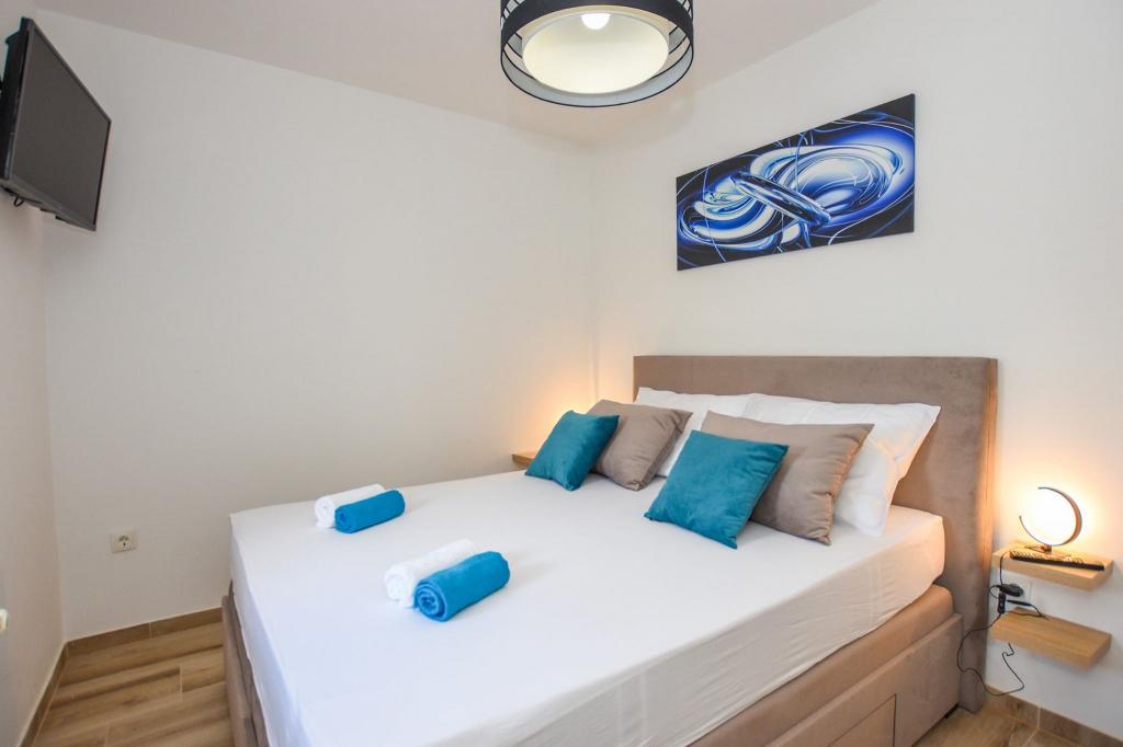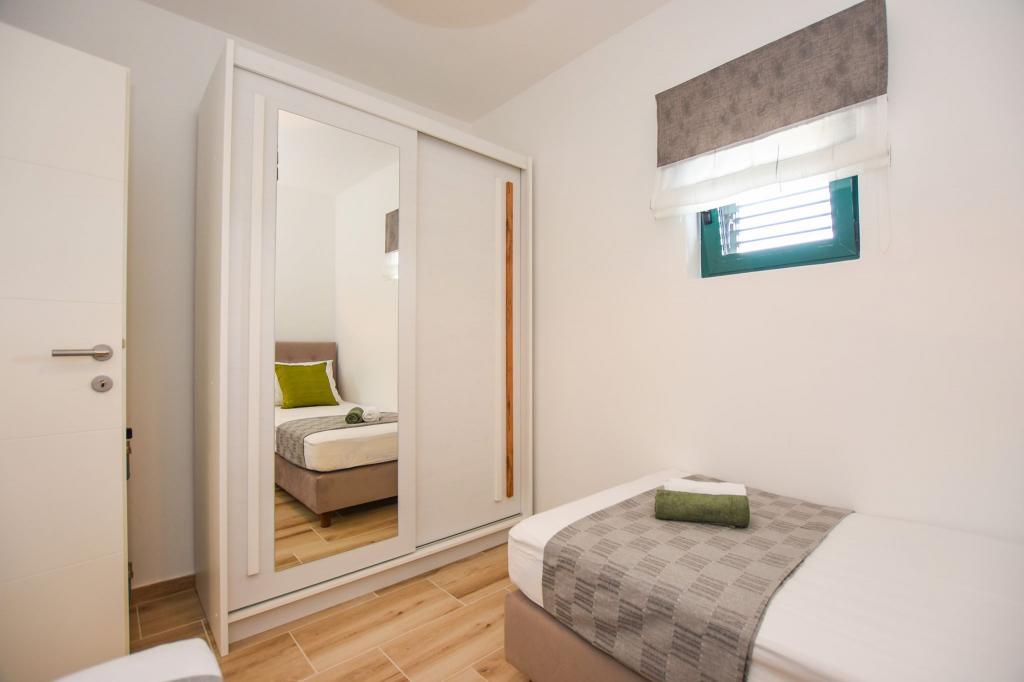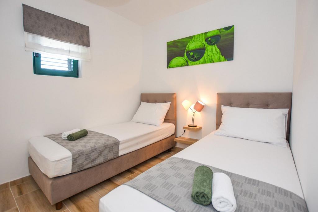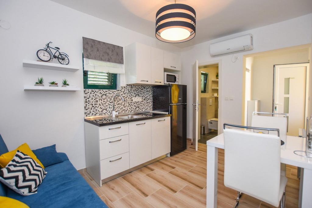 6 NOVIH MODERNO UREJENIH apartmajev, vse enote vključujejo klimatsko napravo, lastno kopalnico s tušem in kuhinjo s pomivalnim strojem, hladilnikom, opekačem kruha in kuhalnikom vode ter skupni prostor za pranje, sušenje in likanje, brezplačen Wi-Fi, led TV, aparat za kavo , otroška posteljica. Brezplačno zasebno parkirišče v krogu 50 metrov. Nekatere enote imajo teraso. V radiju 20 metrov so čudovite plaže, kavarne, otroško igrišče, restavracije, trgovine in igralnica.