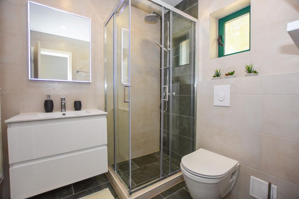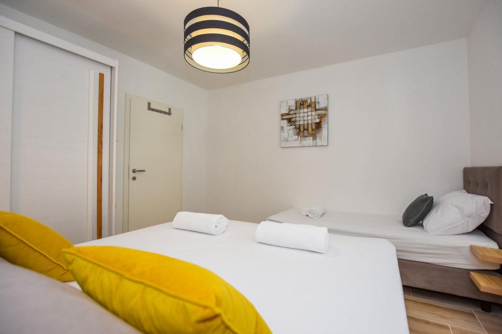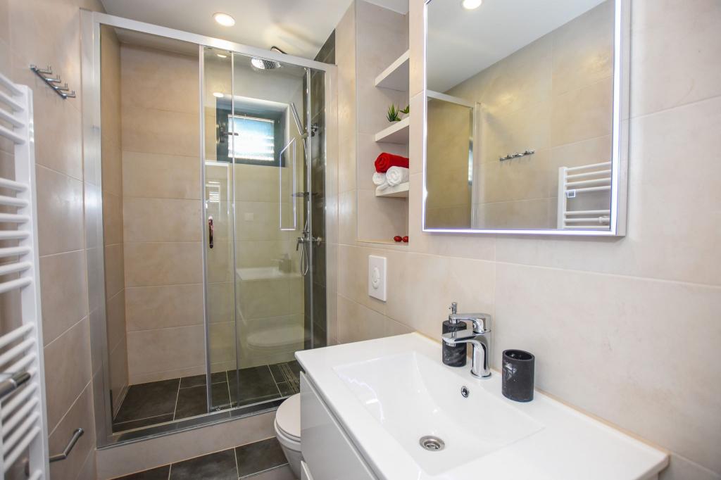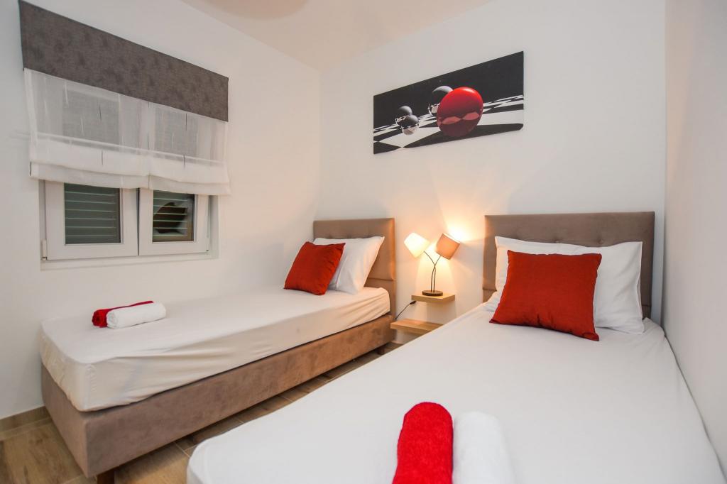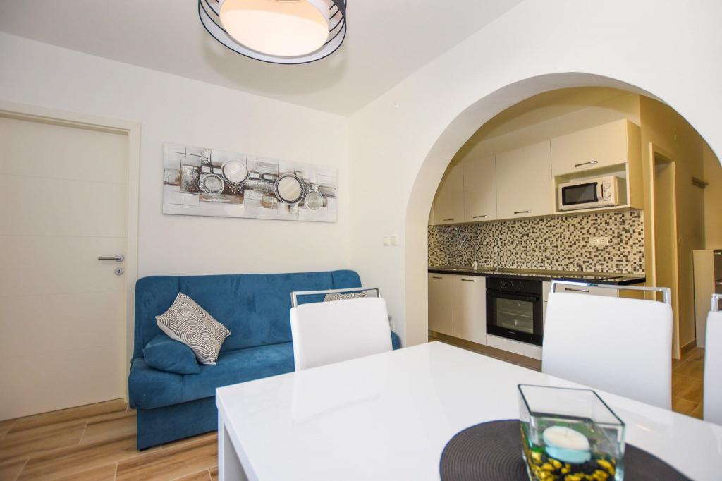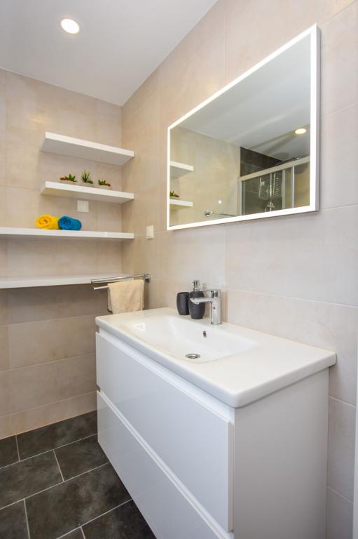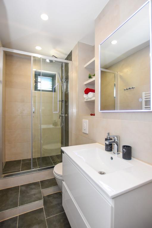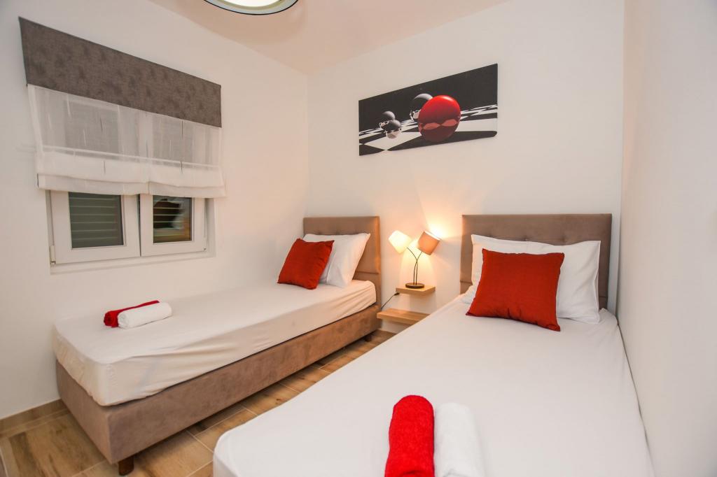 6 NOVIH MODERNO UREJENIH apartmajev, vse enote vključujejo klimatsko napravo, lastno kopalnico s tušem in kuhinjo s pomivalnim strojem, hladilnikom, opekačem kruha in kuhalnikom vode ter skupni prostor za pranje, sušenje in likanje, brezplačen Wi-Fi, led TV, aparat za kavo , otroška posteljica. Brezplačno zasebno parkirišče v krogu 50 metrov. Nekatere enote imajo teraso. V radiju 20 metrov so čudovite plaže, kavarne, otroško igrišče, restavracije, trgovine in igralnica.