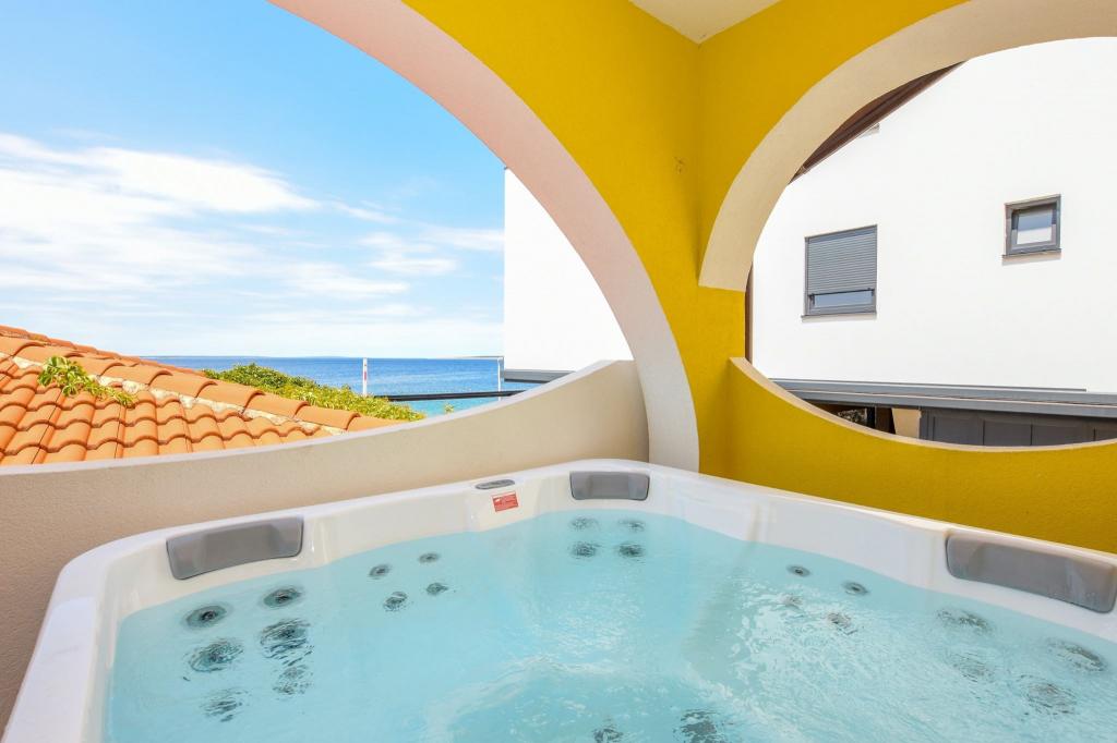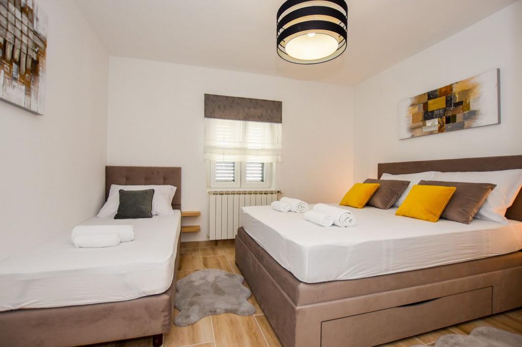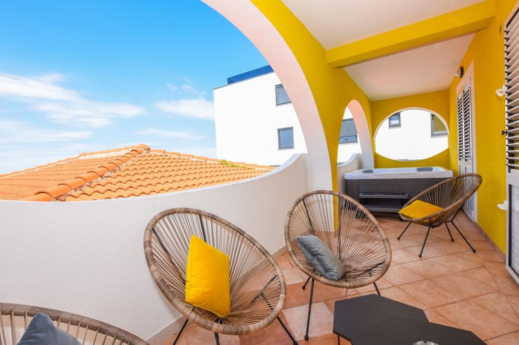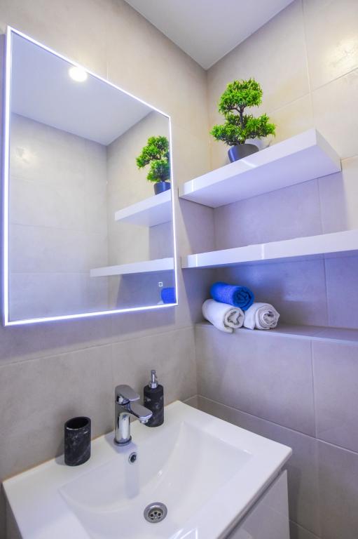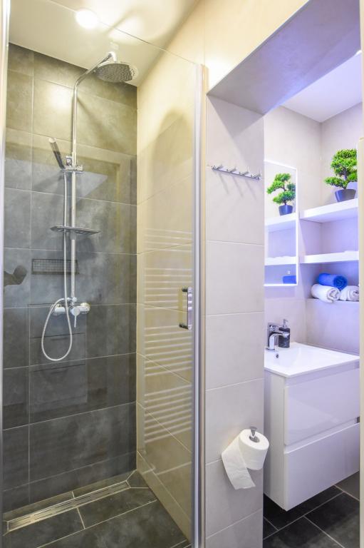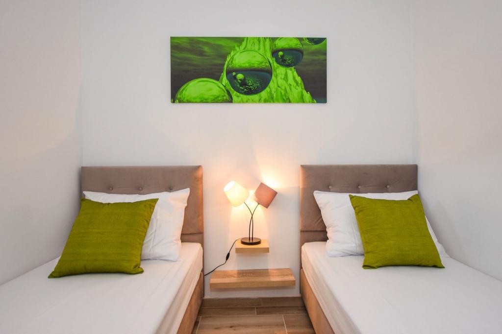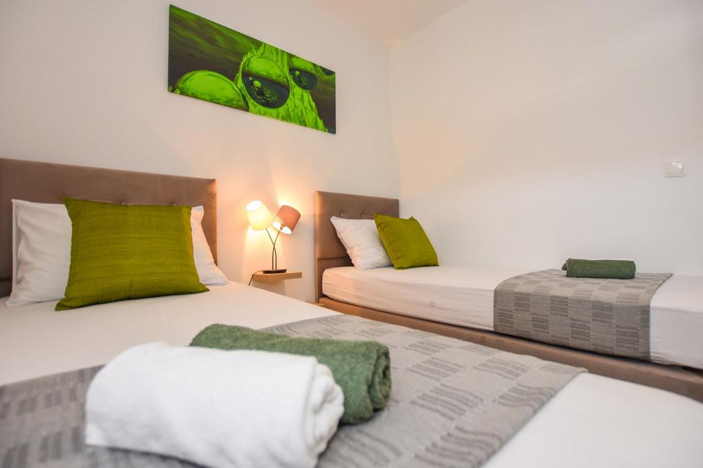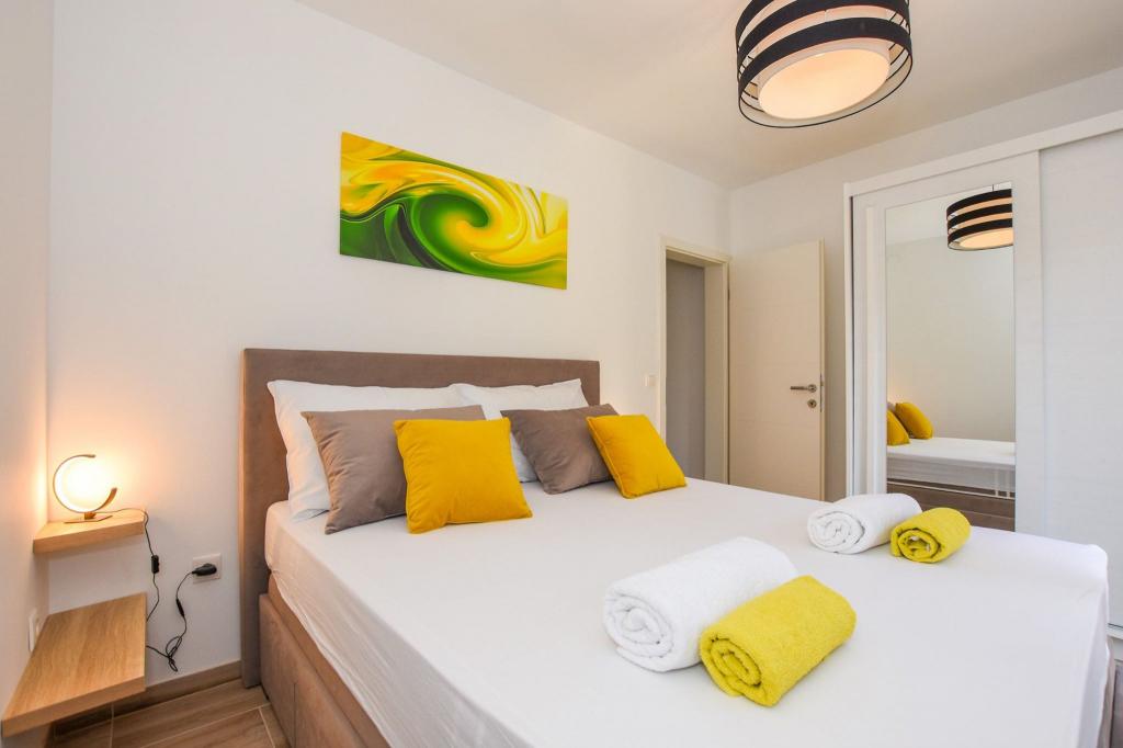 6 NOVIH MODERNO UREJENIH apartmajev, vse enote vključujejo klimatsko napravo, lastno kopalnico s tušem in kuhinjo s pomivalnim strojem, hladilnikom, opekačem kruha in kuhalnikom vode ter skupni prostor za pranje, sušenje in likanje, brezplačen Wi-Fi, led TV, aparat za kavo , otroška posteljica. Brezplačno zasebno parkirišče v krogu 50 metrov. Nekatere enote imajo teraso. V radiju 20 metrov so čudovite plaže, kavarne, otroško igrišče, restavracije, trgovine in igralnica.