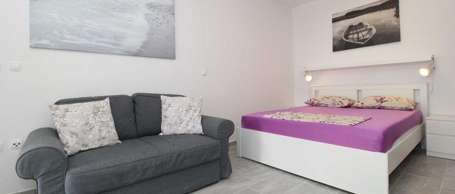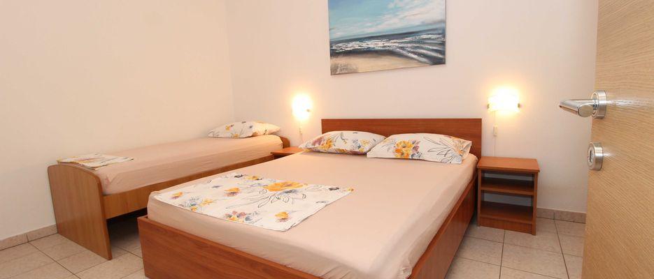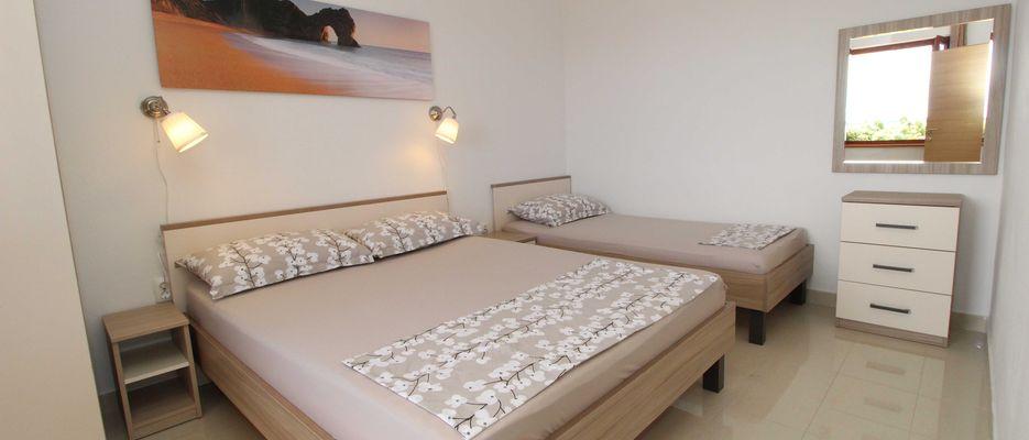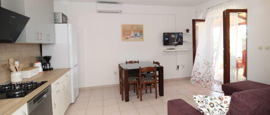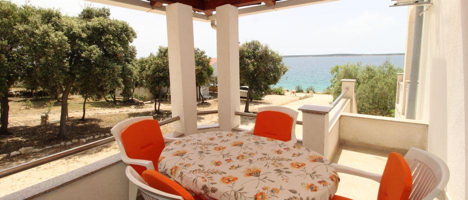 Naši apartmaji se nahajajo 20 metrov od plaže v mestecu Mandre, otok Pag.Idealni so za družinske počitnice.Hiša se nahaja na mirnem mestu z velikim vrtom.V sklopu hiše je veliko parkirišče, žar ..