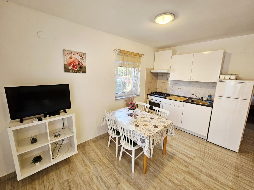 Vrlo dobar apartmaji ZA odmor! Naša obitelj 2 + 3 + pas i prijatelji 2 +2, zajedno 9 osoba sa Dva automobila, imali SMO parkirišče, sve JE Čisto, kompletno opremljeno, mogućnost korištenja roštilja, Terasa, sav NAMJEŠTAJ i prozori sa roletama, klima uređaji i tv satelit. Ali plaze IMA 70 metara, ne pekare JE oko 10 minuta, slastičarnica sa ukusnim sladoledom radiolariji ne 23:00, ne Luke JE oko 20 minuta Hoda, tu JE i Veliki supermarket, avtom možete obići SVA obližnja mjesta, barovi su Odprti ne kasnih sati , Dobro pivo, kava, sladoled, dječje igralište, mezo JE skupo u trgovinama (oko 35 kn PO kilogramu). Vlasnici žive oko 50 m u drugoj kući. u glavnom Bilo nam JE vrlo lijepo i rado sebi sjećamo našeg boravka Iž 2007. godina. Preporučujem!
