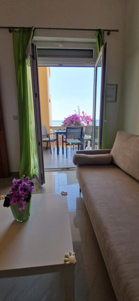 Apartma je preprosto opremljen, vse na voljo, kar potrebujete, lokacija sanje, pogled na morje s terase ne preseči V supermarket, imaš srečo s krušnimi zvitki. Po 20 metrih se lahko spustite v morje. Gospoda Iris, vedno za vedno prijazno. Oddajamo apartmaje za 40 let in imeli smo veliko prijetnih namestitev, a redko eno, kjer je lokacija in stanovanje je bilo tako super!