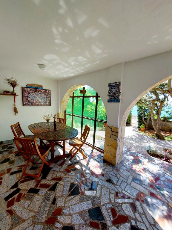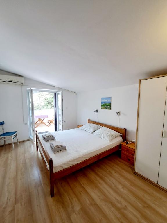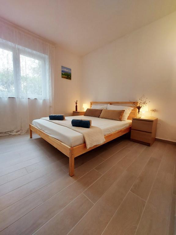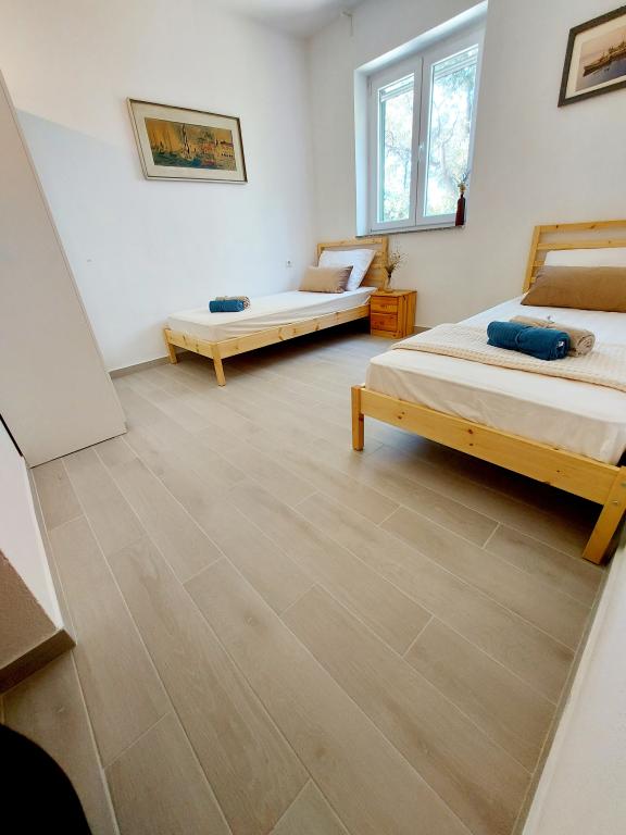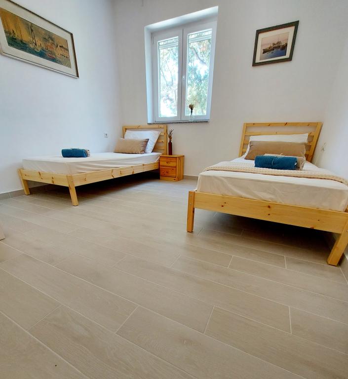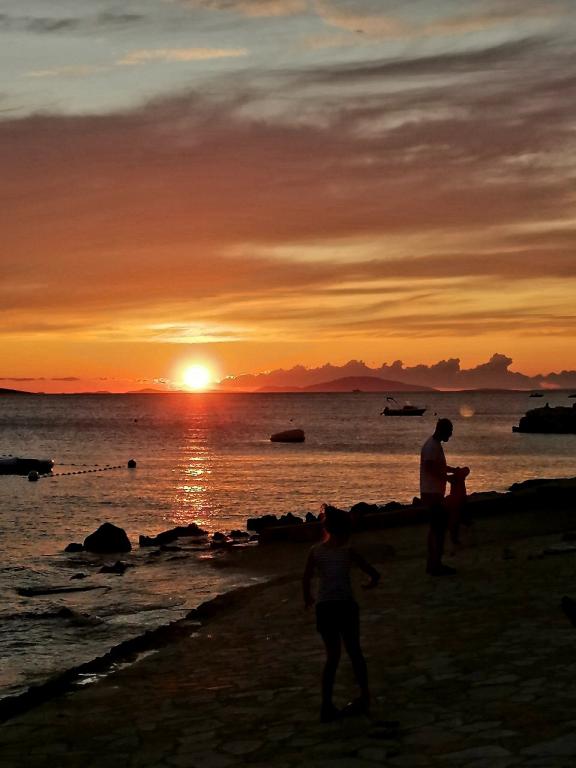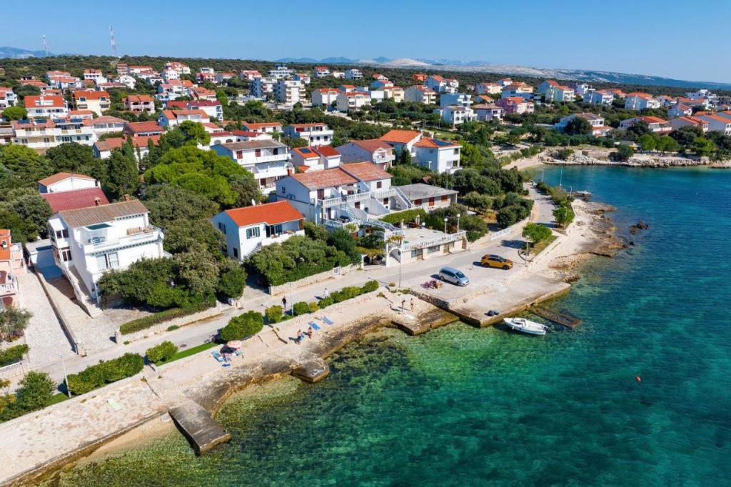 Mandre, turistična in ribiška vasica na otoku Pag, se nahaja na južni strani otoka s čudovitim razgledom na Silbo in Olib ter otočke Maun in Škrda, ki so bogati z zalivi in čudovitimi plažami. Naša hiša se nahaja v prvi vrsti ob morju, ob kamniti in prodnati plaži, le stopiti morate iz dvorišča, prečkati plažo in se okopati v kristalno čistem morju! Apartmaji so popolnoma opremljeni, obdani s prostornim dvoriščem z naravno senco. Brezplačno parkirišče se nahaja neposredno pred apartmajem. To je odličen kraj za počitnice družin z otroki in ljubitelje narave. Mandre imajo razvejano obalo s 3 kilometre dolgo promenado in prodnatimi plažami, 14 km od Novalje in Zrća, 16 km od mesta Pag in približno 60 km od zgodovinskega mesta Zadar. Ob čudovitem sončnem zahodu, vonju soli in šumenju morja pridite in uživajte v našem kraju. Na prostornem dvorišču je možno shraniti kolesa in SUP desko za veslanje.