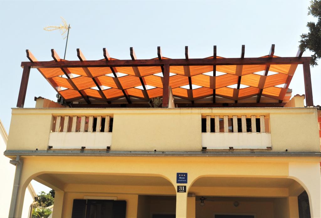 Popolnoma in moderno opremljeno stanovanje v centru mesta. Apartma se nahaja 2 minuti hoje od plaže, trgovine, tržnice... . Sestoji iz spalnice, dnevne sobe z jedilnico in kuhinjo, WC-ja s kopalnico in čudovite terase, pokrite s pergolo s pogledom na morje. Kuhinja je popolnoma opremljena. Gostom sta na voljo brezplačen WiFi in klimatska naprava. Brisače in posteljnina so na voljo. Gostom apartmaja je na voljo brezplačno zasebno parkirišče.