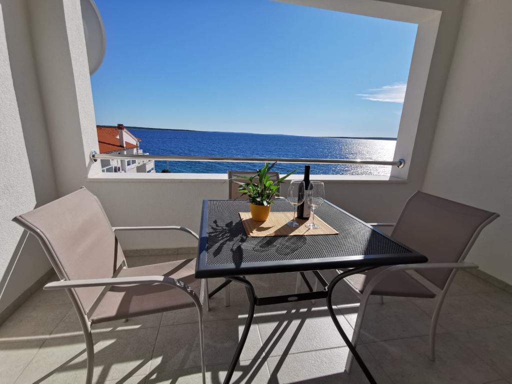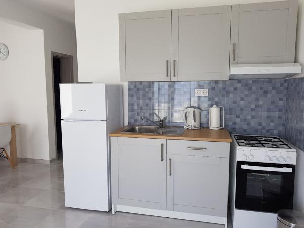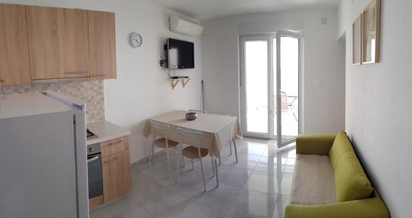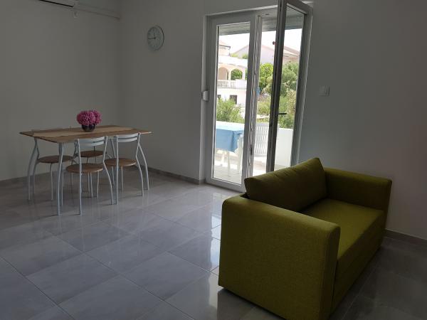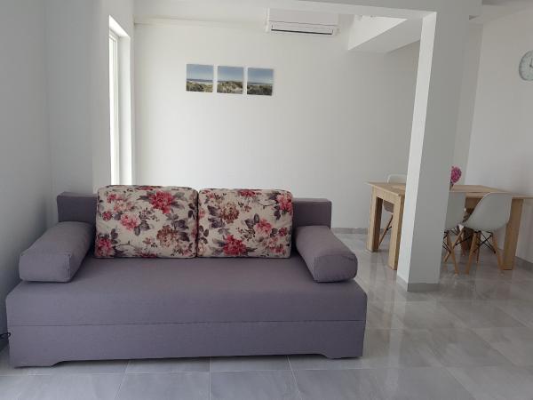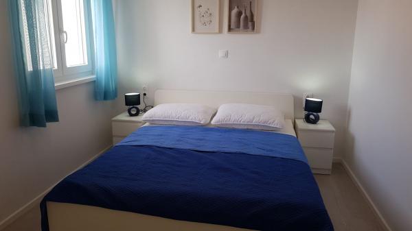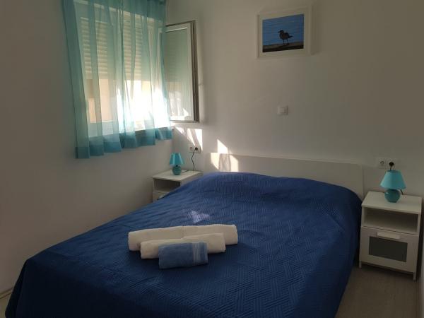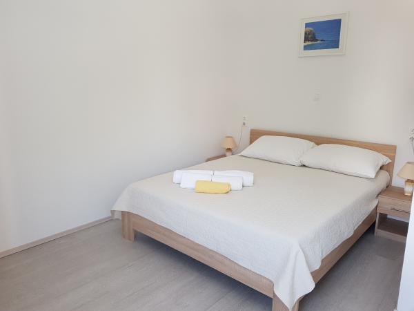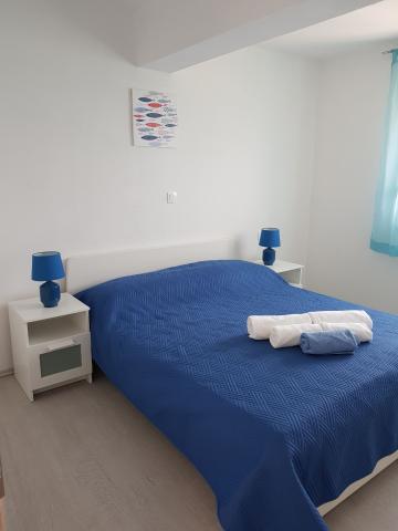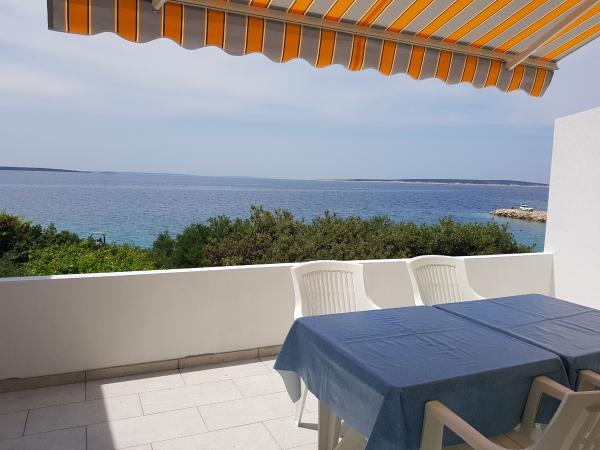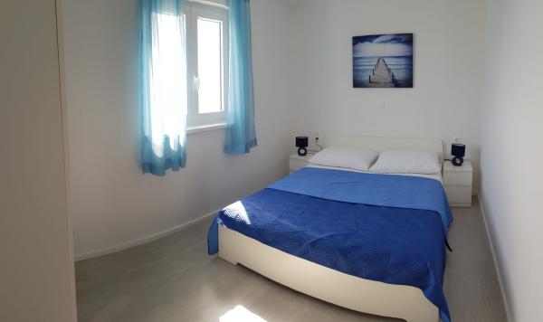 Naši apartmaji se nahajajo ob morju, v centru mesta Mandri na otoku Pagu. Vsi apartmaji se nahajajo v 1. nadstropju naše družinske hiše, tako da ponujajo čudovit pogled na morje. Apartmaji so na novo prenovljeni in opremljeni z internetom, klimo, TV/SAT, popolnoma opremljeno kuhinjo, poleg tega pa lahko na vsa okna skupaj z žaluzijami namestite komarnike, kot zaščito pred komarji. Vsak apartma ima svoje parkirno mesto, vsi gostje pa lahko uporabljajo žar na vrtu. Skozi naše dvorišče greste neposredno na plažo, tako da za prijeten oddih na soncu potrebujete samo brisačo čez ramo! Zelo se veselimo vašega prihoda!