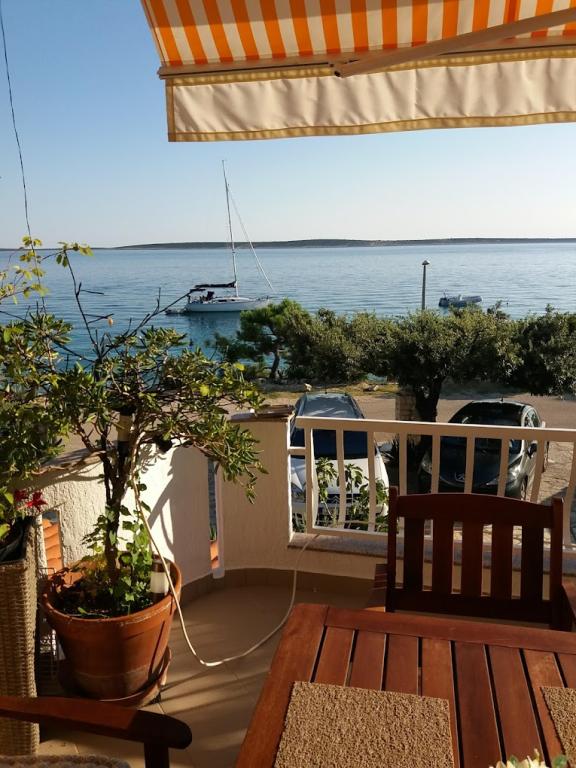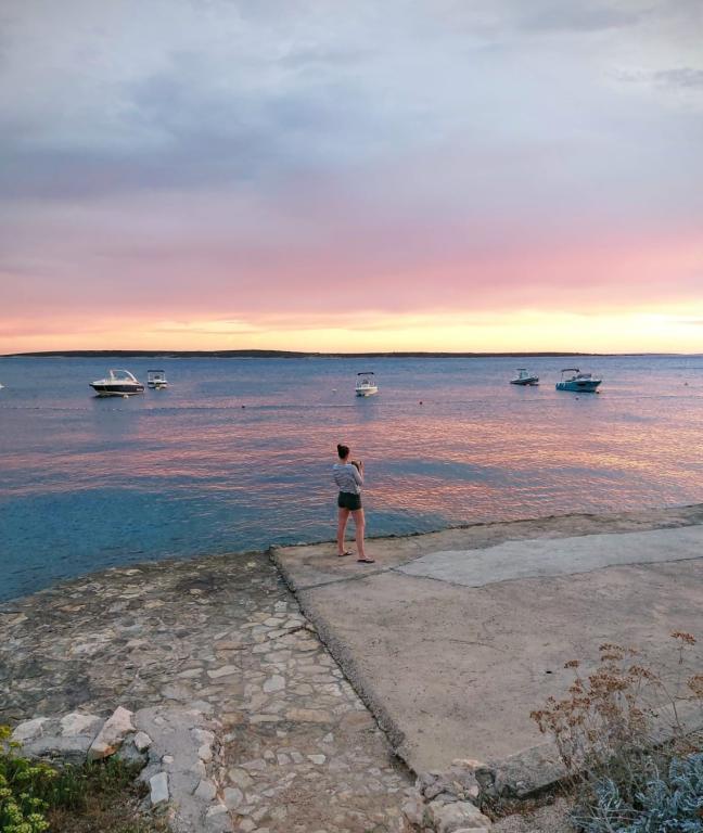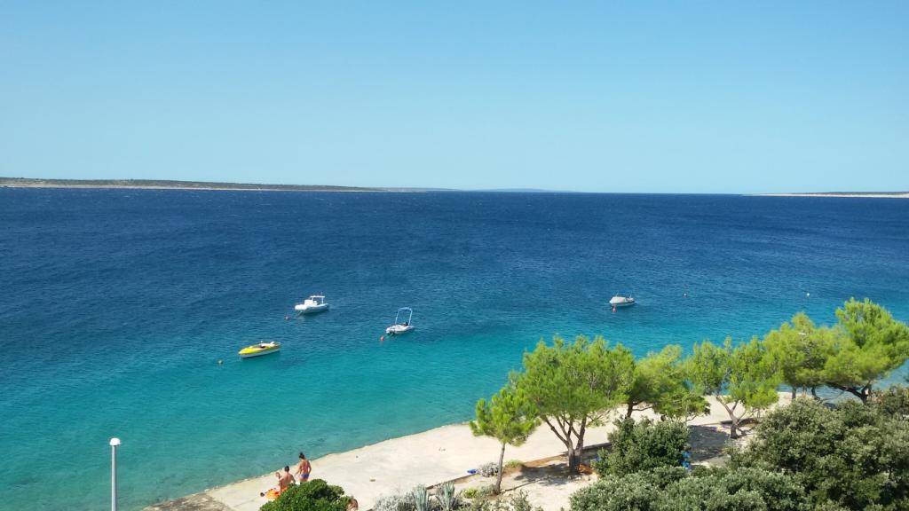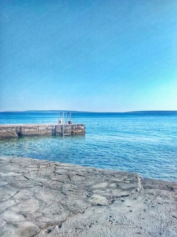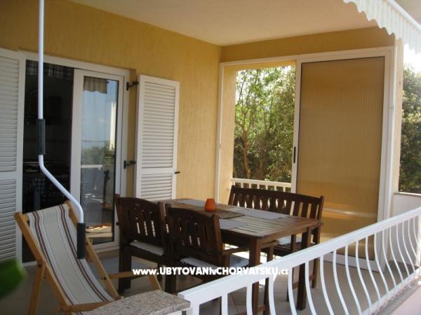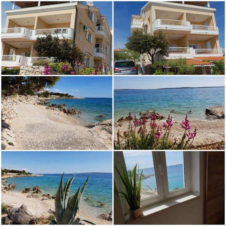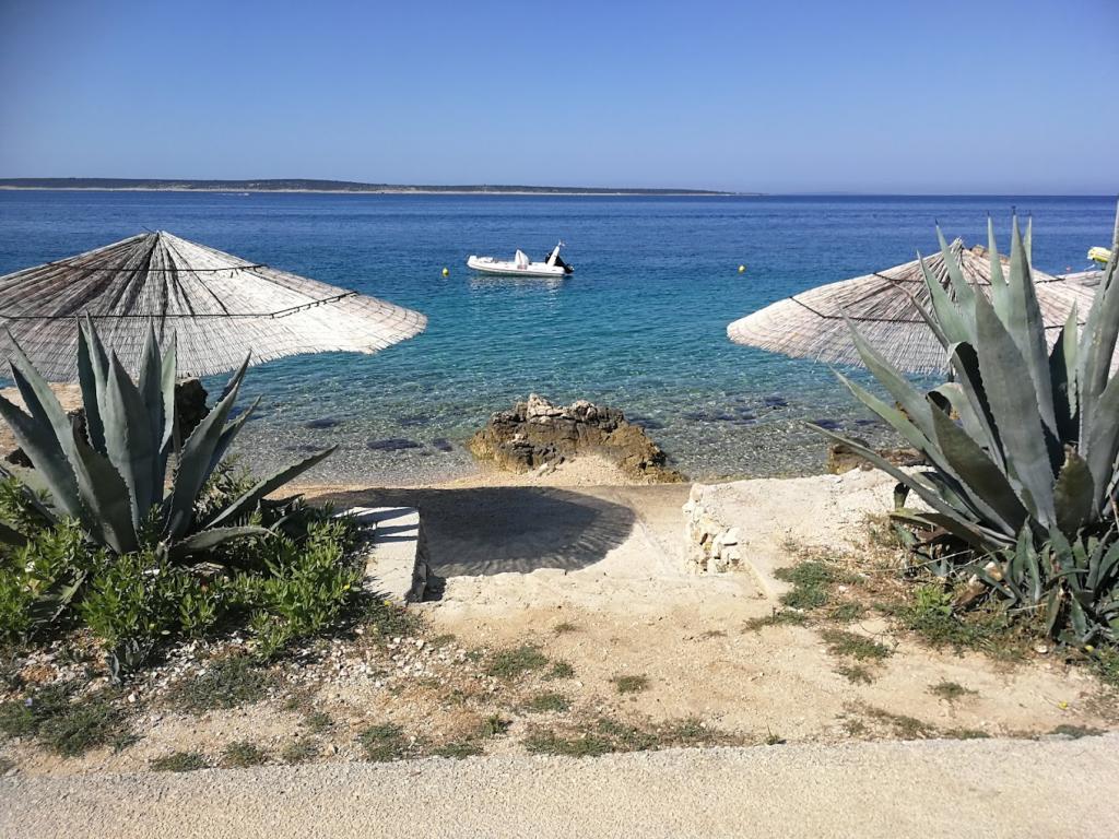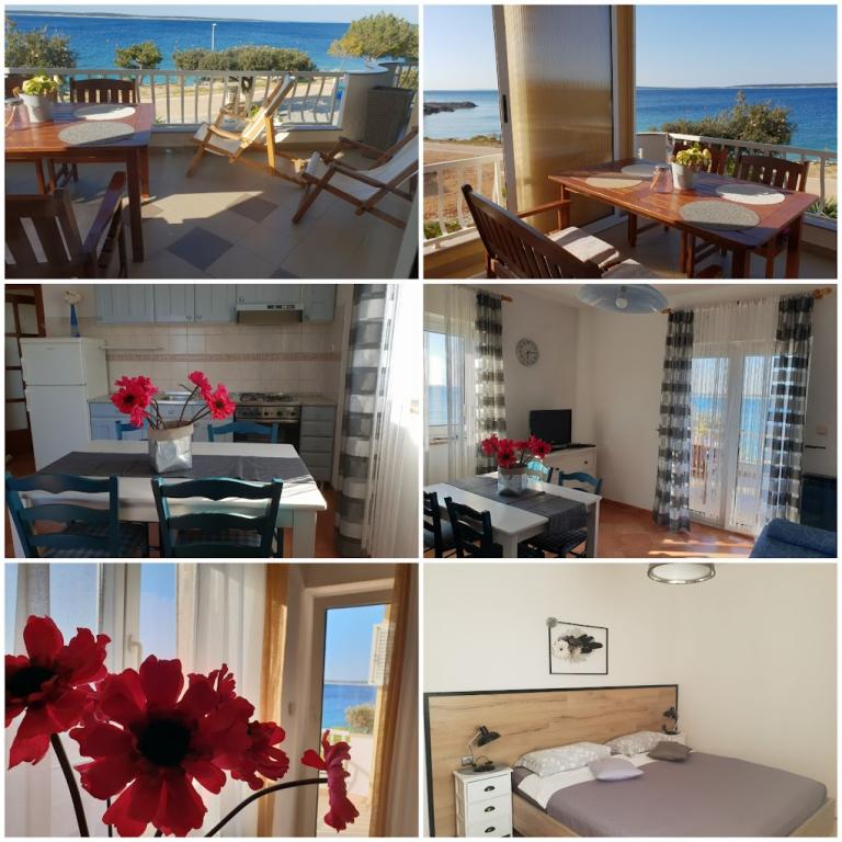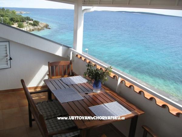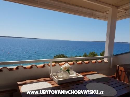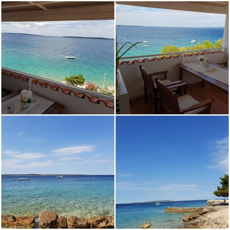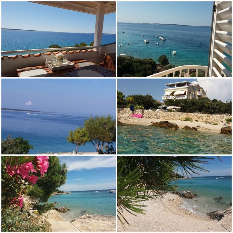 Hiša 10 metrov od morja, plaža pred hišo. Vsak apartma 45m2, terasa 12m2, balkon 4m2, vsi z neposrednim pogledom na morje in otoke. Parkirišče zagotovljeno, žar na dvorišču, voda odlična za pitje. Morje je čisto, plaže so lepo urejene. Mandre so namenjene družinskemu turizmu.