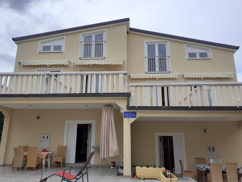 Oddajajo se apartmaji z zasebnim vhodom in ločeno teraso. Cena apartmaja je določena s številom nočitev, dodatni popusti so odvisni od števila gostov in dolžine bivanja. Popolnoma opremljeni apartmaji s kuhinjo, hladilnikom z zamrzovalnikom, štedilnikom (pečica samo v apartmaju ROYAL) s kompletno posodo in jedilnim priborom. Vsi apartmaji imajo klimatsko napravo in stropni ventilator, veliko zakonsko posteljo (160x200) in dodatno ležišče po potrebi. Vsak gost prejme brisačo. Vsak apartma ima posteljnino za vse postelje in eno parkirno mesto za osebno vozilo. POMEMBNE OPOMBE: - ŽIVALI (HIŠNI LJUBLJENČKI) NISO DOVOLJENE Naša hiša se nahaja v 5. vrsti od morja, torej ob plaži z drobnim gramozom in blagim vhodom v morje, primerni za majhne otroke. Naša hiša je 10 minut hoje od centra Mandre. Majhno mesto Mandre je miren kraj, idealen za družinske počitnice s pogledom na paški arhipelag in odprto morje v jugozahodni smeri. Zaradi svoje geografske lege ni nevarnosti močnega vetra (burje).