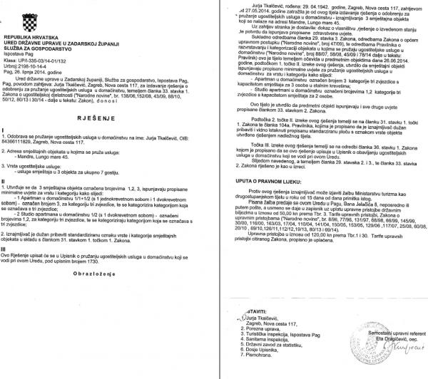 Turistična taksa je vključena v ceno. Dokument o potrditvi rezervacije ob rezervacijiSpoštovani gostje! Rezervacijo lahko odpoveste do 10 dni pred začetkom najema, ne glede na razlog, da bi bili upravičeni do celotnega povračila zneska rezervacije (100 EUR). Zahteva za odpoved rezervacije se odda izključno po elektronski pošti: jurja.tkalcevic@gmail.com, prosimo za natančna navodila za povračilo rezervacije (bančni račun, številka računa, swift/bic). Zaradi bančnih predpisov potrebujemo za izplačilo povračila polni naslov imetnika računa.