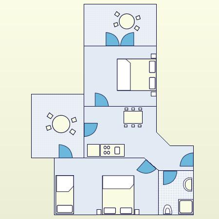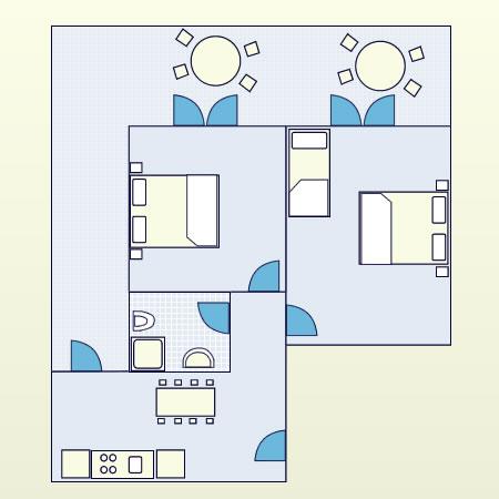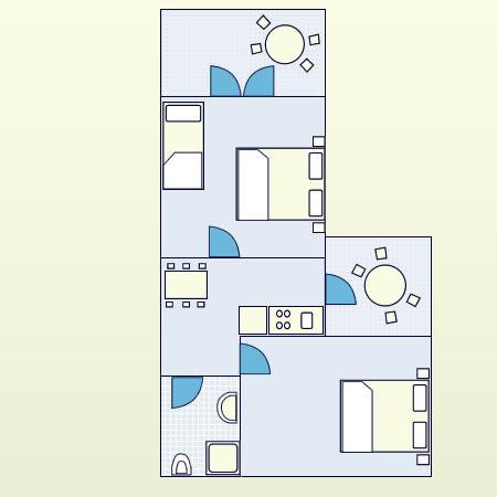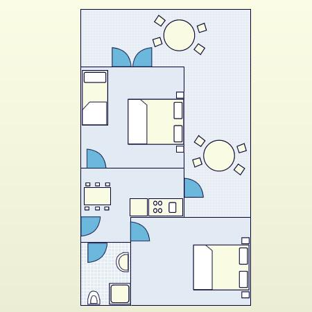 Apartma za dve osebi, možnost dveh dodatnih ležišč (50 m2)