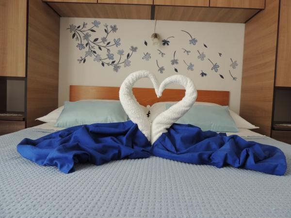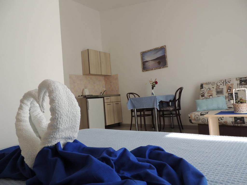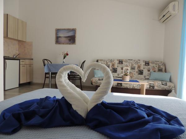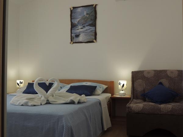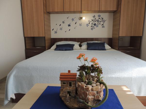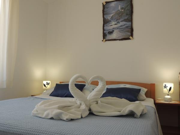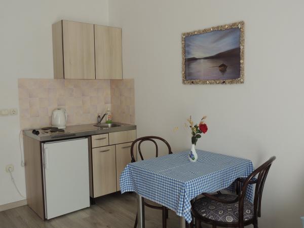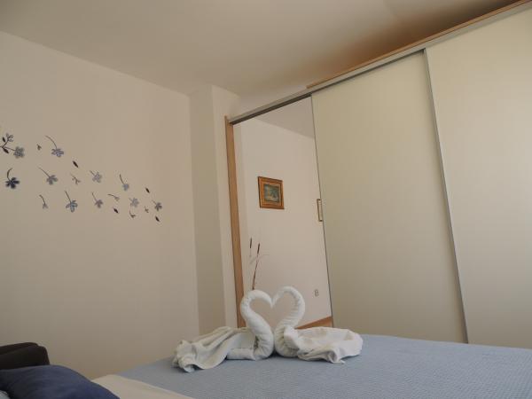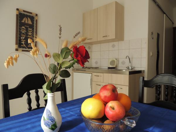Apartma je na odlični lokaciji v hoje. Dobiš parkirno karto za avto. Soba je bila čista in dobro opremljena z AC, je bila velika omara, udobno posteljo. Najboljša pa je lastnica Marije, zelo velika in topla žena, ki svojo pokojnino vodi z ljubeznijo in navdušenjem. Govori dobro nemško in je vedno na vprašanjih Mi smo bili toplo pozdravili s krempljanjem vode s hrano in dobil lepo poslovilno darilo. Samo super. Tudi povezana restavracija je vrhunsko vrhunsko osebje. Hvala Susanna Uwe Tyson