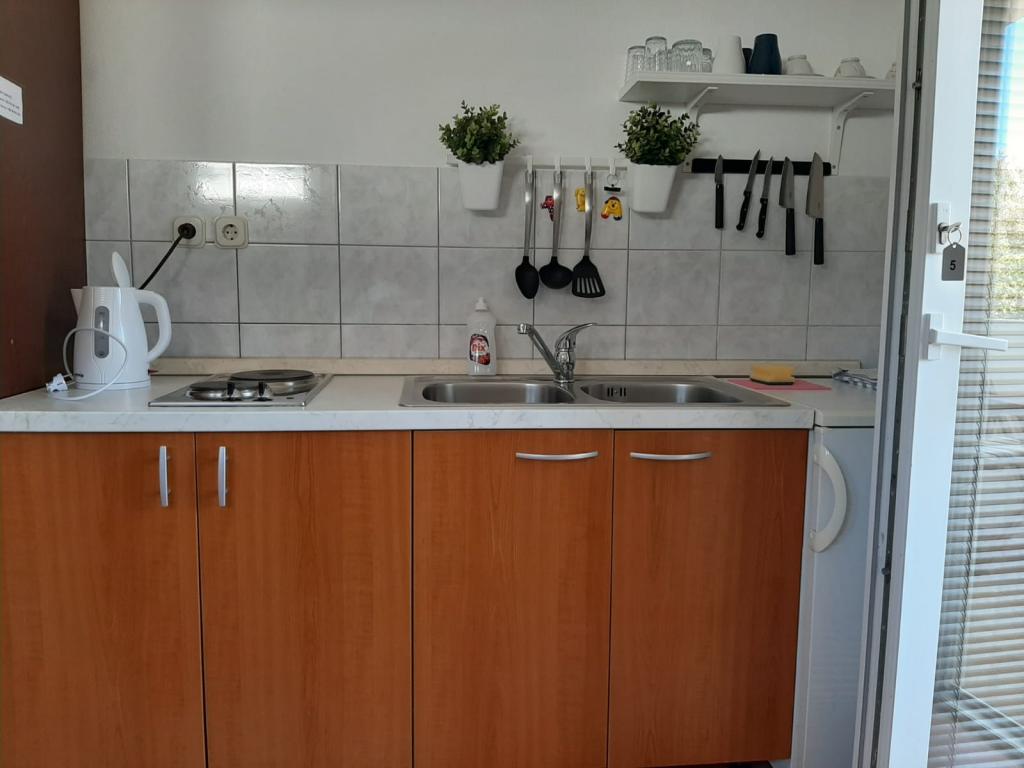 Vukovarska ulica št. 6, 23250 Pag, otok Pag, Hrvaška (HR) GPS koordinate: Latitude: 44.448532, Longitude: 15.053667 • 5 apartmajev za najem: od 25 do 60 m2 • pohištvo po meri, popolnoma opremljeno, klima, LED TV (SAT), brezplačen brezžični internet, brezplačno parkirišče pred hišo; brisače, posteljnina in kuhinjske brisače so vključene v ceno, mirna ulica, 2 minuti do morja ... brezplačno Prednosti: Čeprav je ulica blizu centra Paga, je ulica mirna. Blizu plaže, mestne pošte, trgovine, avtobusne postaje.