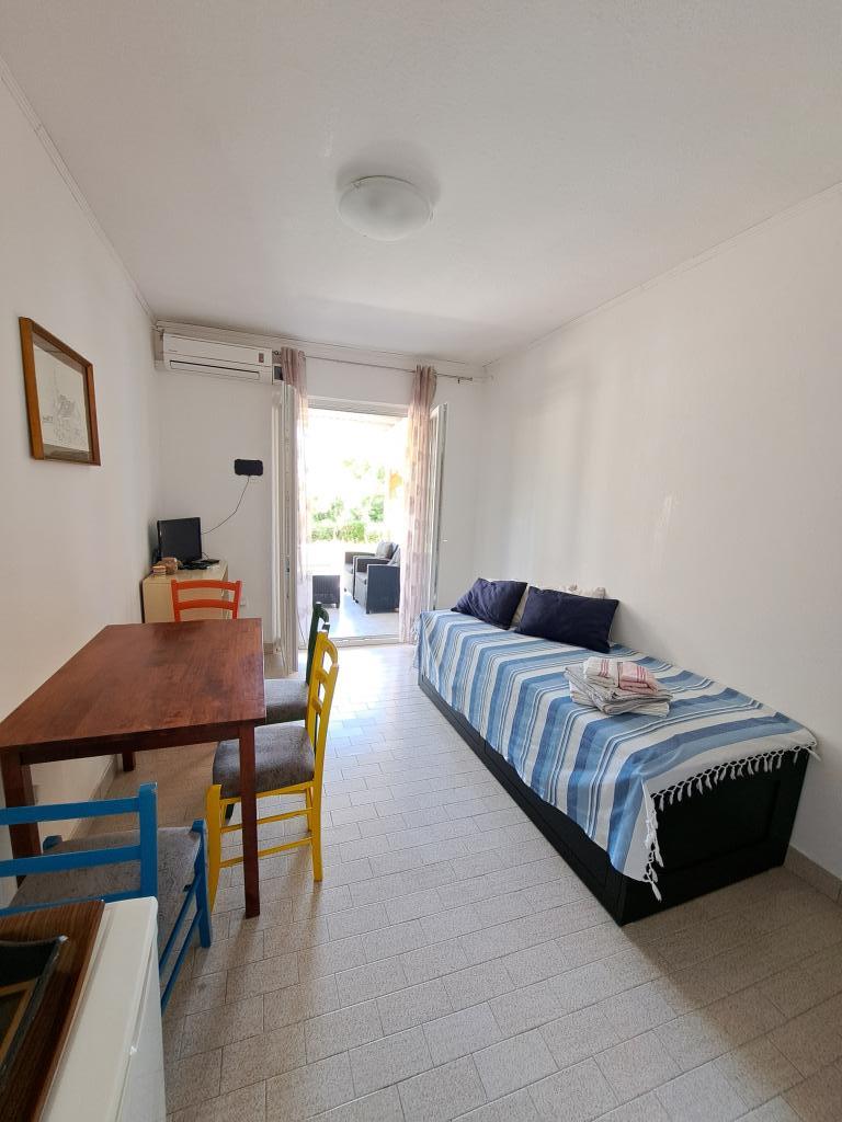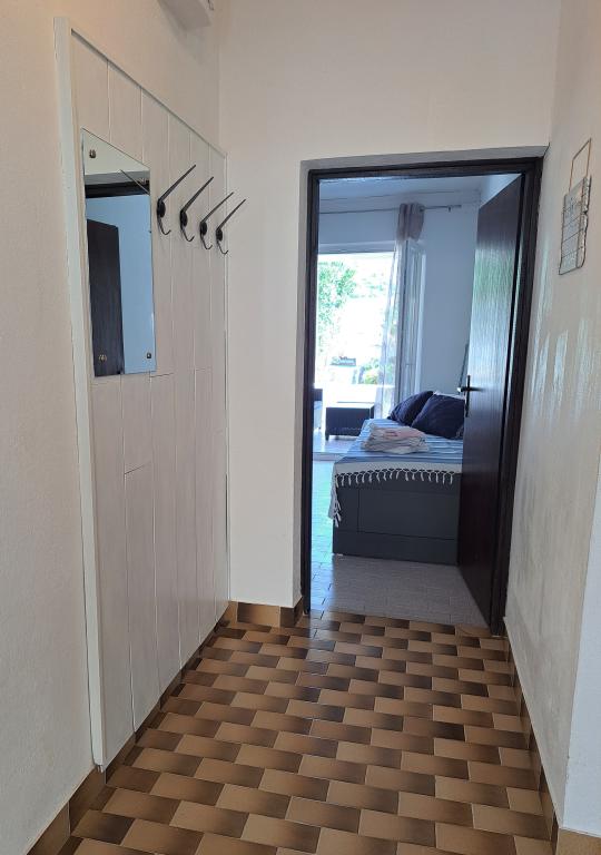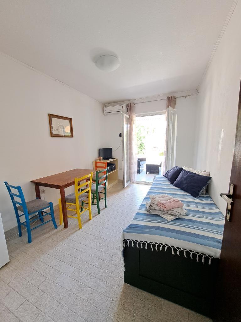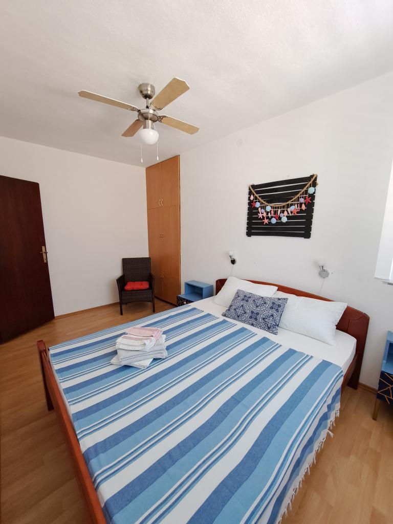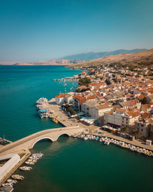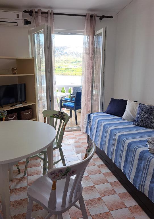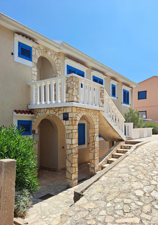 Apartma se nahaja na otoku Pag, v mirni in tihi ulici Ljubačka 7, v družinski hiši. Sestavljen je iz spalnice, dnevne sobe, kopalnice, kuhinje in hodnika. V dnevni sobi je raztegljiva postelja (ko je razgrnjena, je velikosti zakonske postelje 160x200). Brezplačno parkirišče je pred hišo. Center Paga in mestna plaža Prosika sta zelo blizu (približno 900 m oziroma 10 minut hoje), dve manjši plaži pa sta oddaljeni 100 m od hiše.