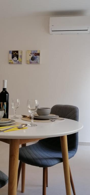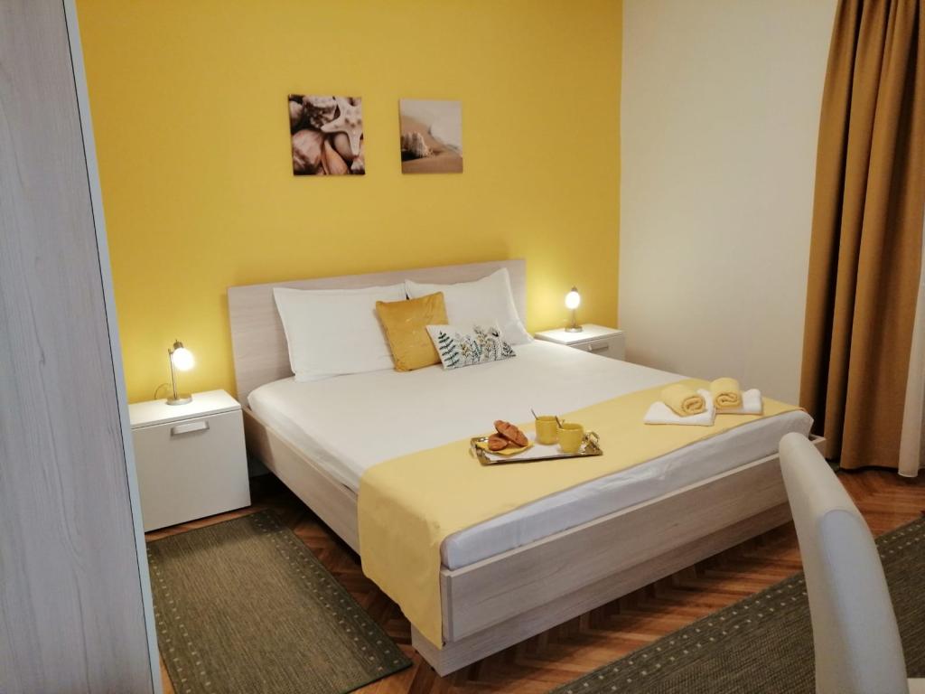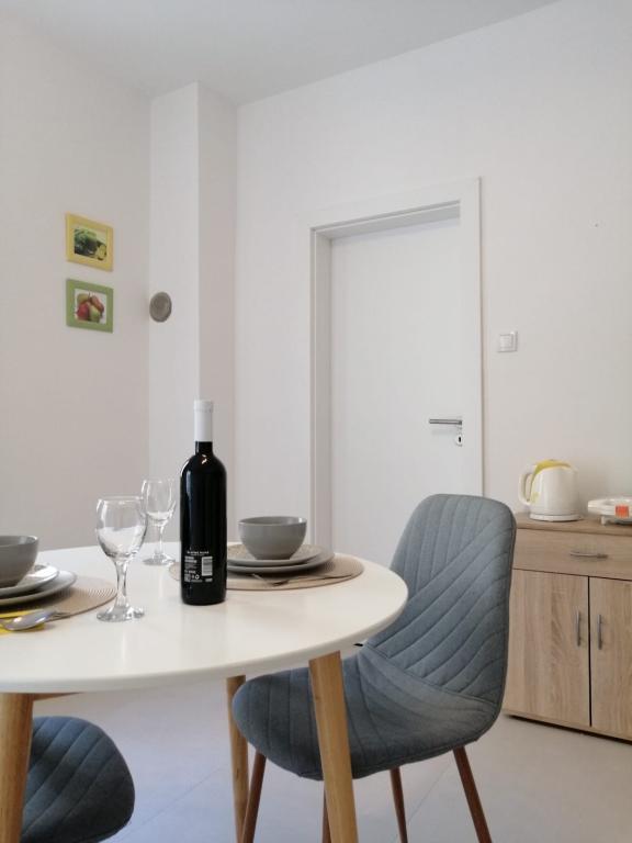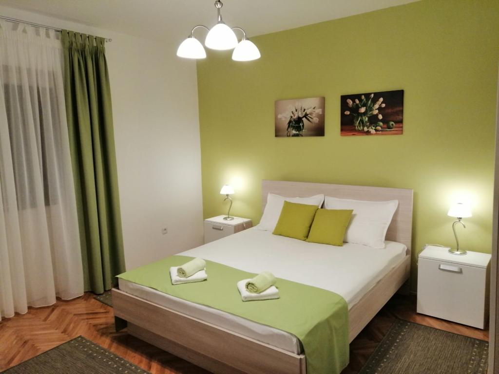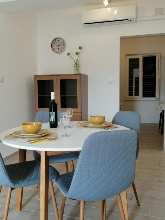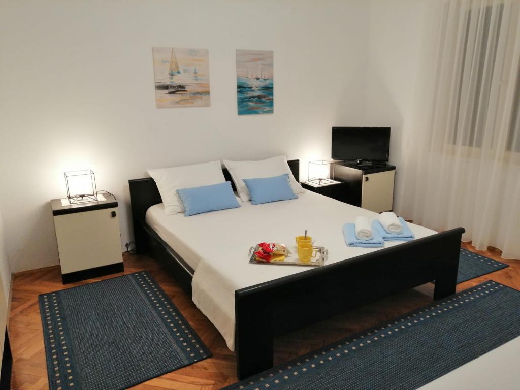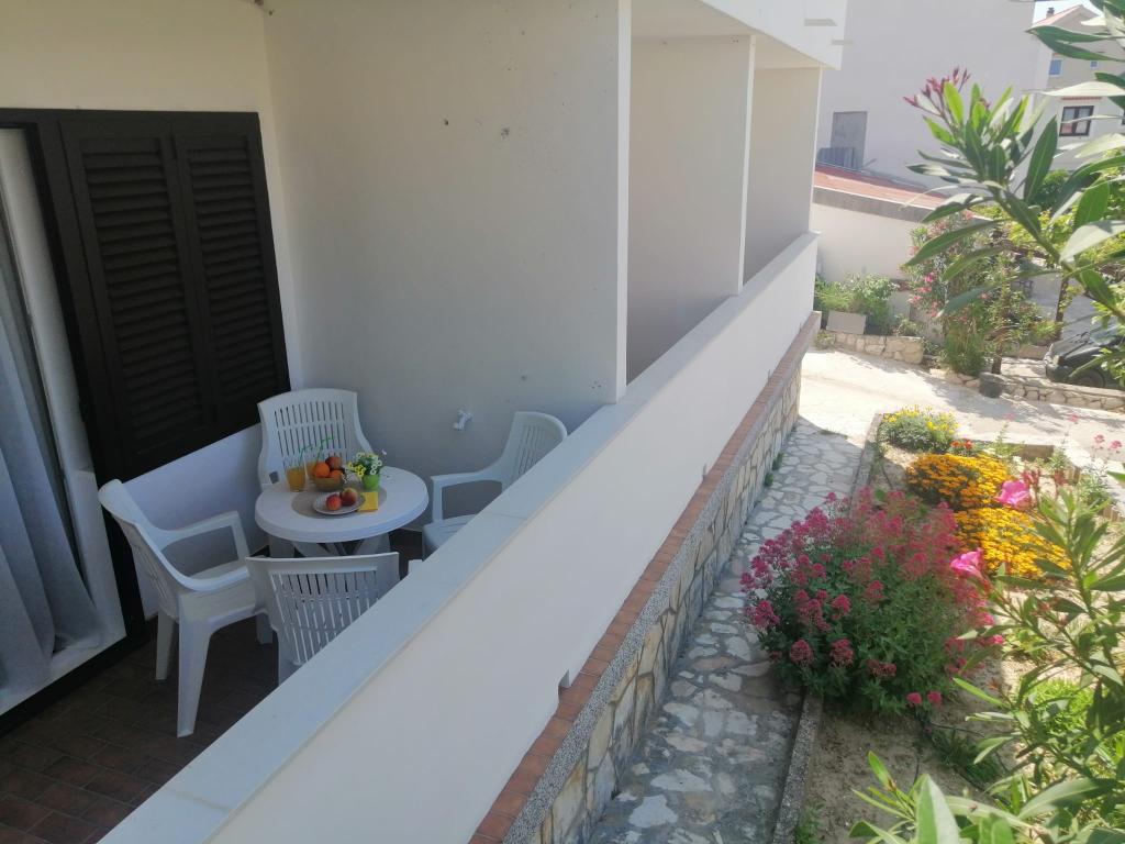 Spoštovani gostje, apartmaji se nahajajo v hiši v mirnem predelu mesta Pag. Hiša je v prvi vrsti do morja, le 20 metrov od plaže in 900 metrov od centra. Primerni so za družine z otroki. Ponujamo dva apartmaja za 2 (A2) in 4 osebe (A4). Apartmaji imajo klimatsko napravo, brezplačen WI-Fi, satelitsko televizijo. Vsak apartma ima ločen vhod. Pred hišo je brezplačno parkirišče z naravno senco za vaš avto. Hišni ljubljenčki niso dovoljeni.