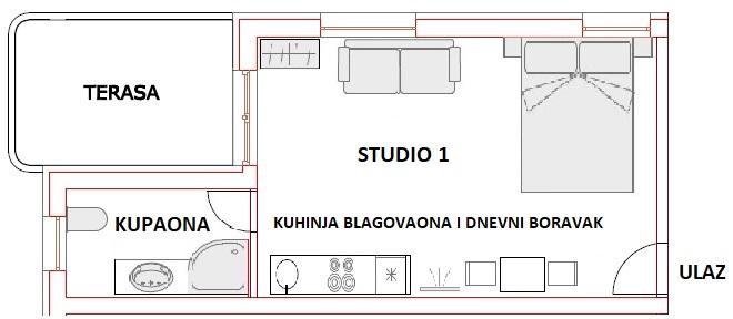Studio je čist in urejen. Vse, kar sem potreboval v kuhinji, je bilo v opremi. Zelo prijazni gostitelji. Blizu je morja in centra Paga za večerni izhod. Garsonjera naj bi bila 2-sobna, če pa gre kdo z otrokom, se tudi to da brez problema rezervirati. Zelo priporočam.