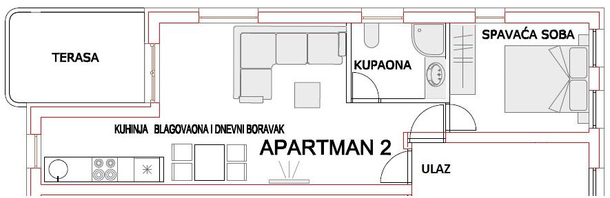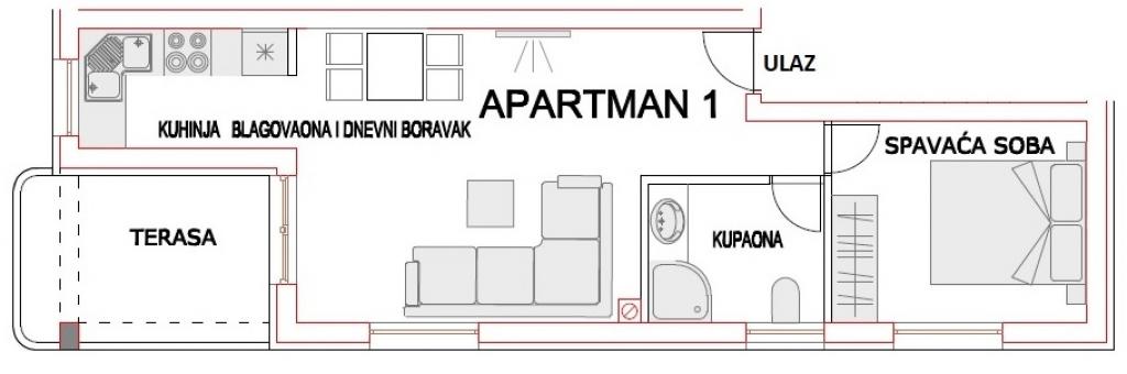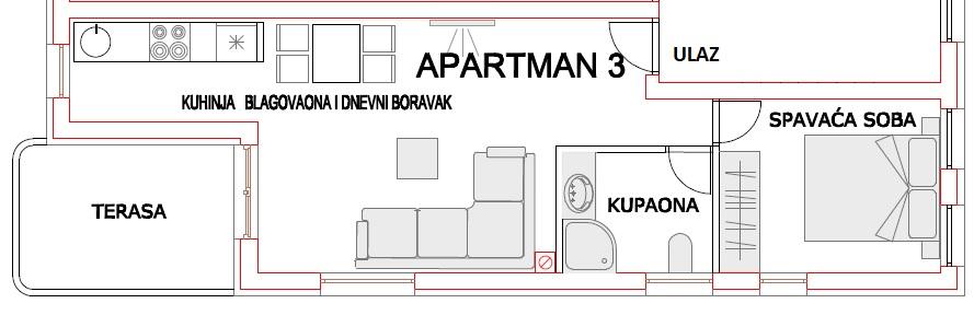 Ponujamo tri apartmaje, ki so le 3 minute hoje do centra Paga in 6 minut hoje do plaže. Vsi trije apartmaji so na novo in sodobno urejeni, vključujejo klimatsko napravo, TV, SAT, wi fi, opremljeno kuhinjo, spalnico, kopalnico. Imajo eno zakonsko posteljo in raztegljiv kavč, na voljo pa je tudi dodatno ležišče. Na voljo je parkirišče in žar.