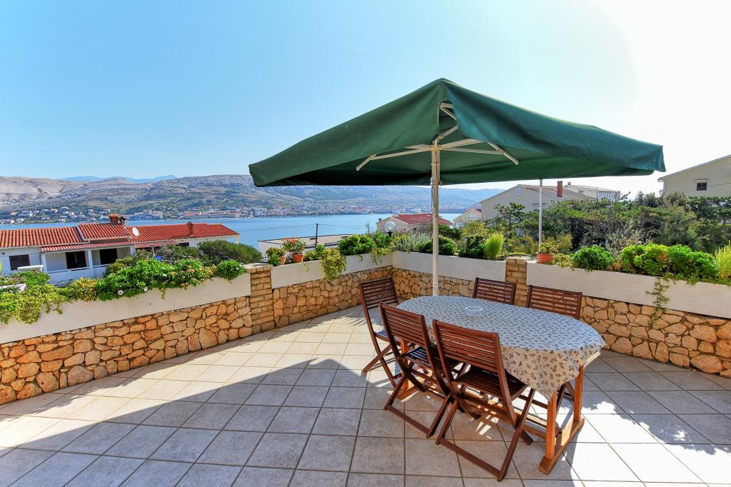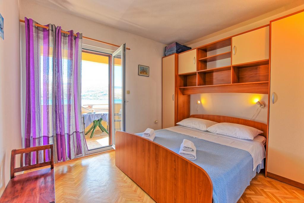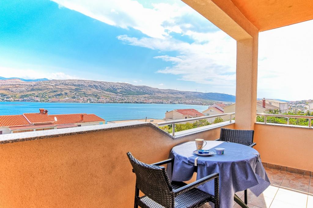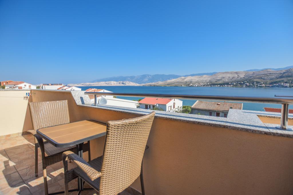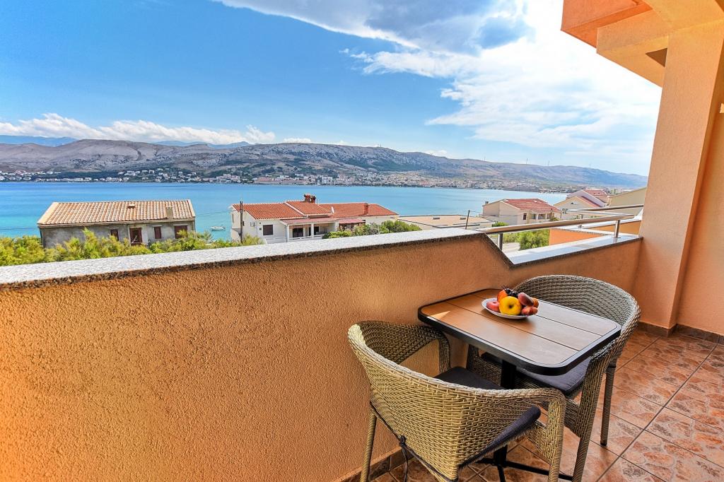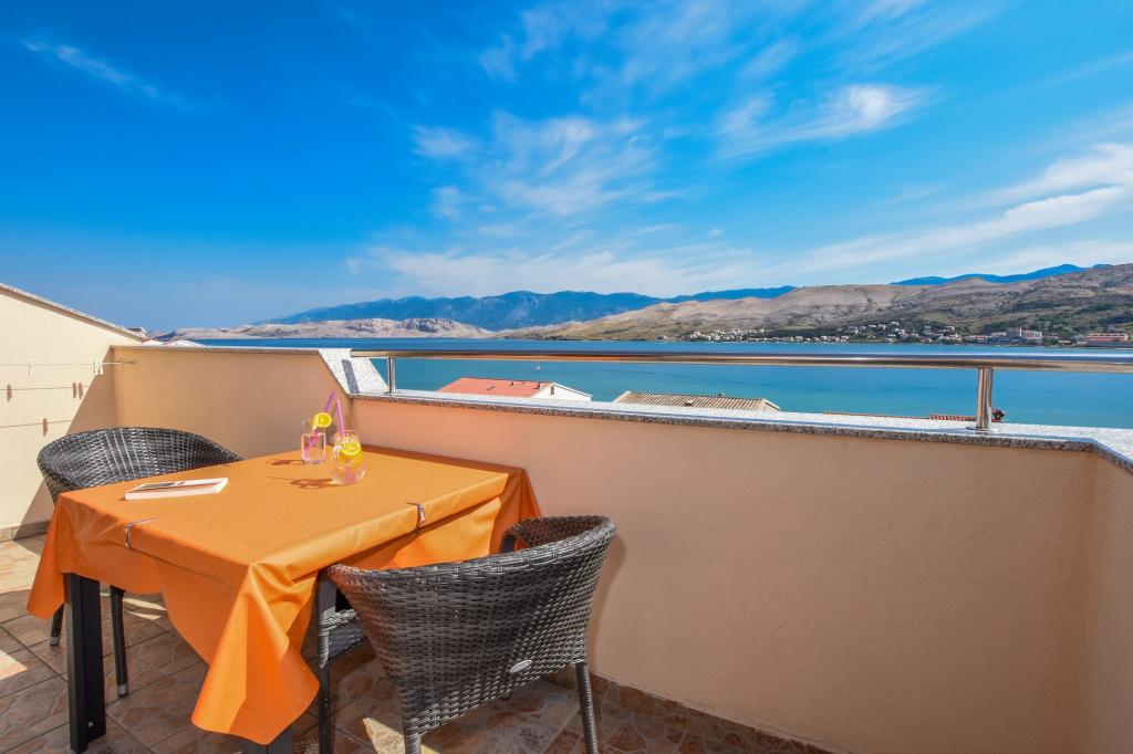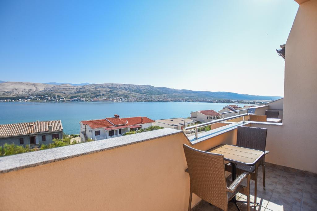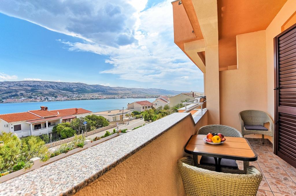 Prostoren apartma z 2 balkonoma, oba imata čudovit pogled na morje in mesto Pag. Primerno za družine z otroki, 5 min. peš od plaže Prosika. Odlično in prostorno parkirišče. Lastnik je prijazen in vedno na voljo.